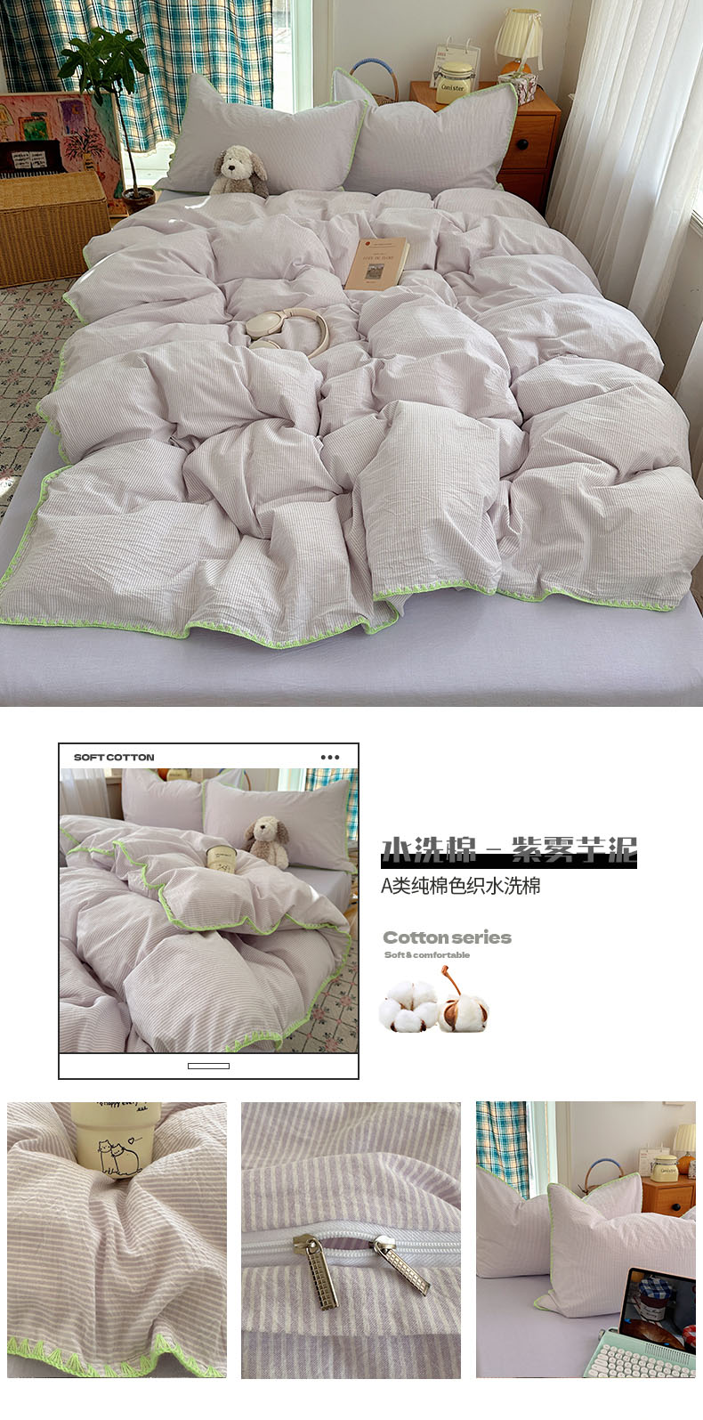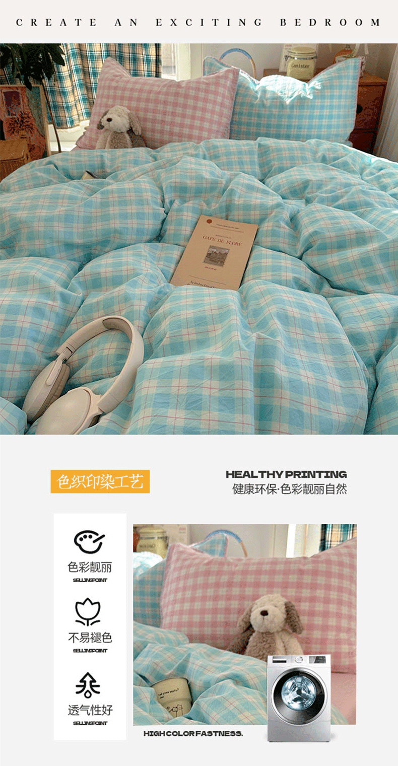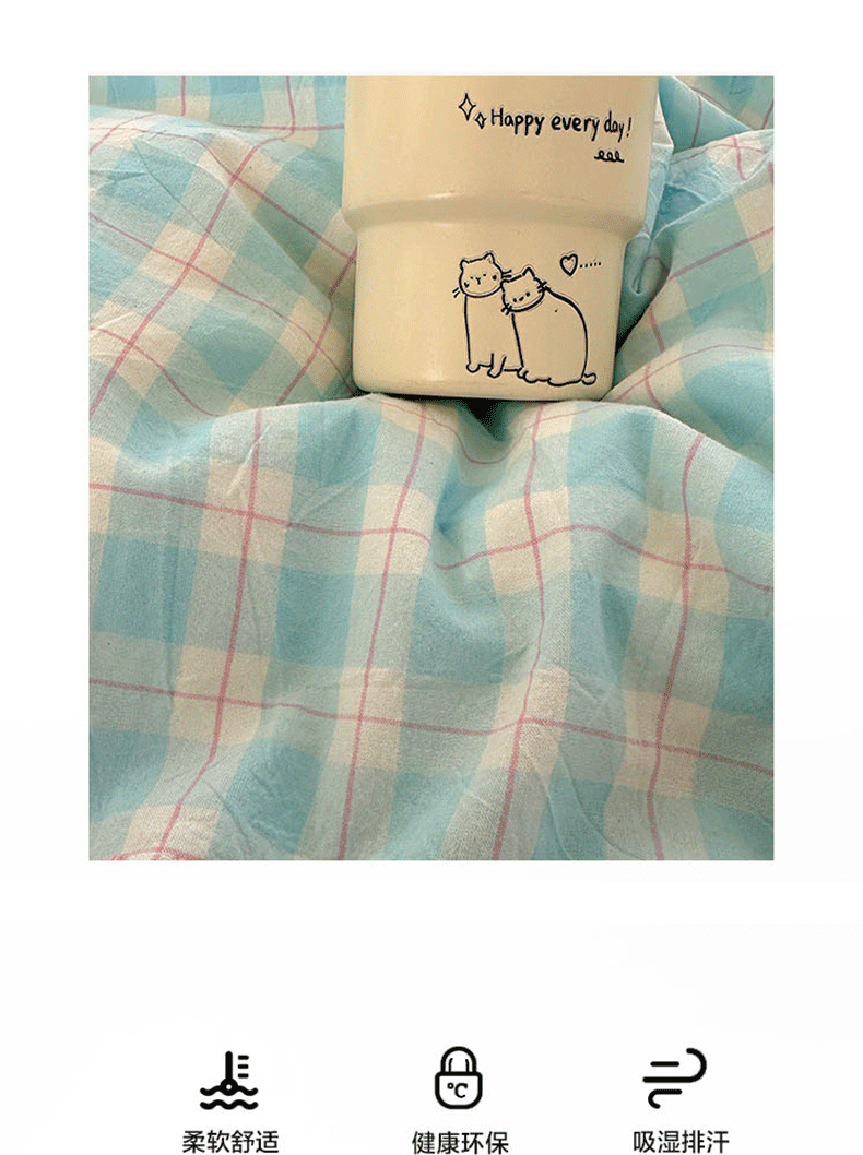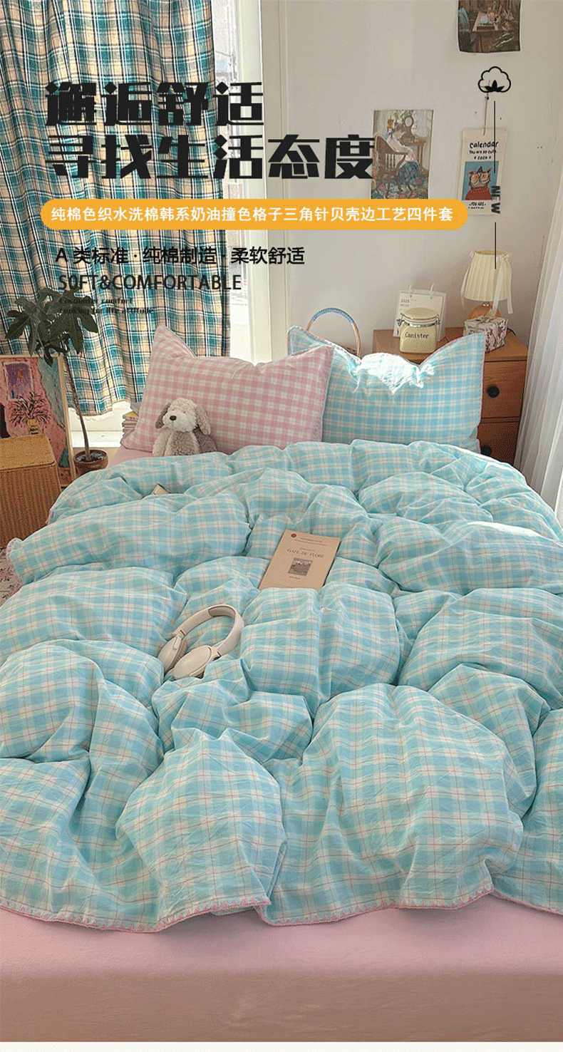(总)桃子家居 2026新款A类纯棉色织水洗棉韩系奶油撞色格子三角针贝壳边工艺四件套系列,棉三角针-薄荷桃桃,棉三角针-海盐橘子,棉三角针-蓝雾桃格,棉三角针-蜜桃奶酥,棉三角针-奶黄青提,棉三角针-青柠薄荷,棉三角针-甜莓冰萃,棉三角针-紫雾芋泥