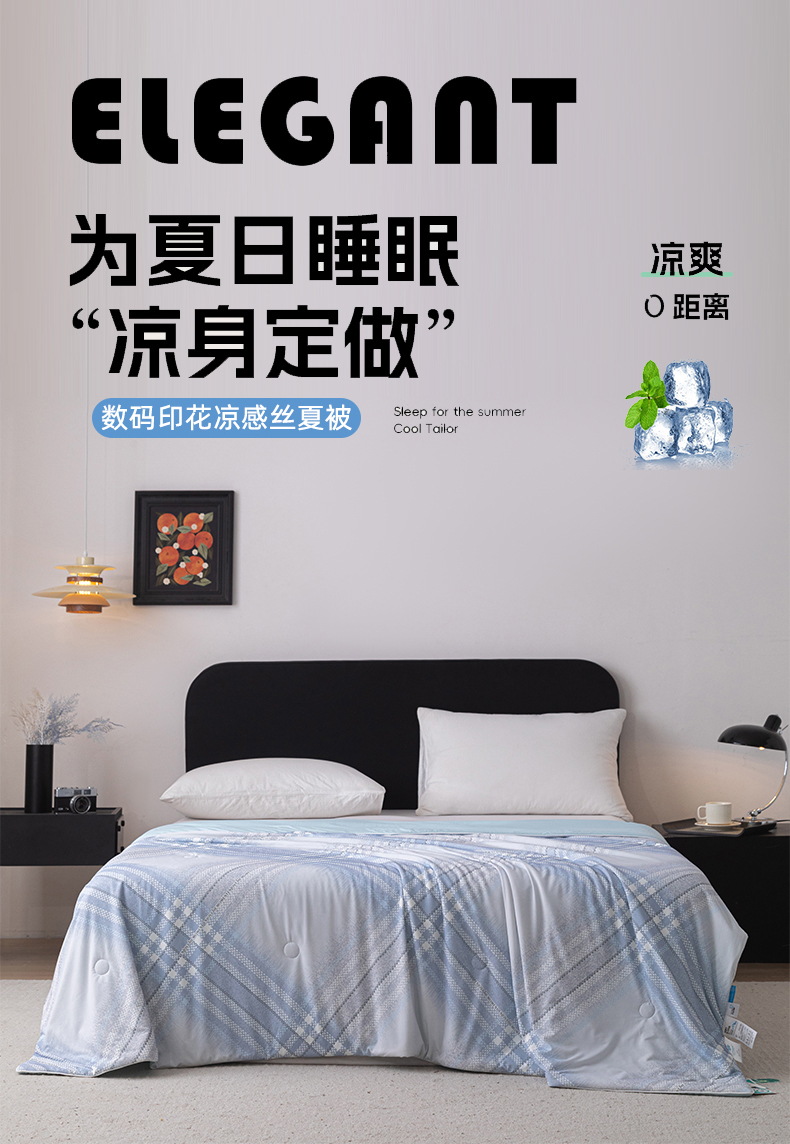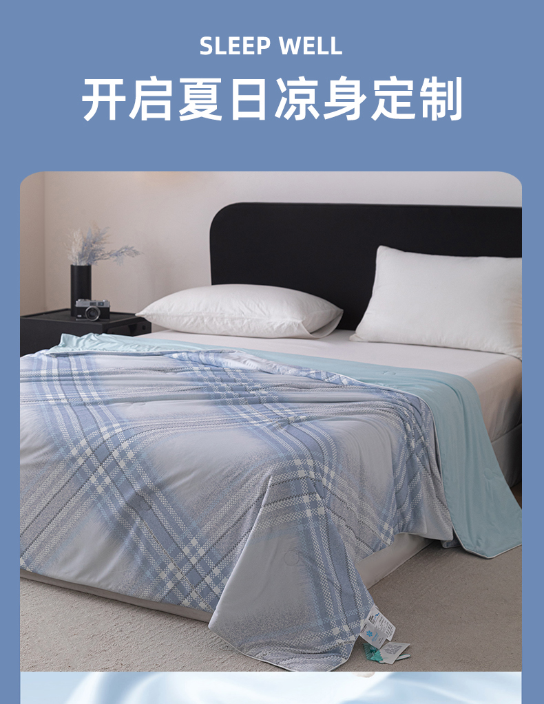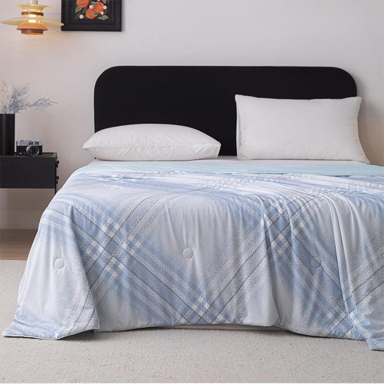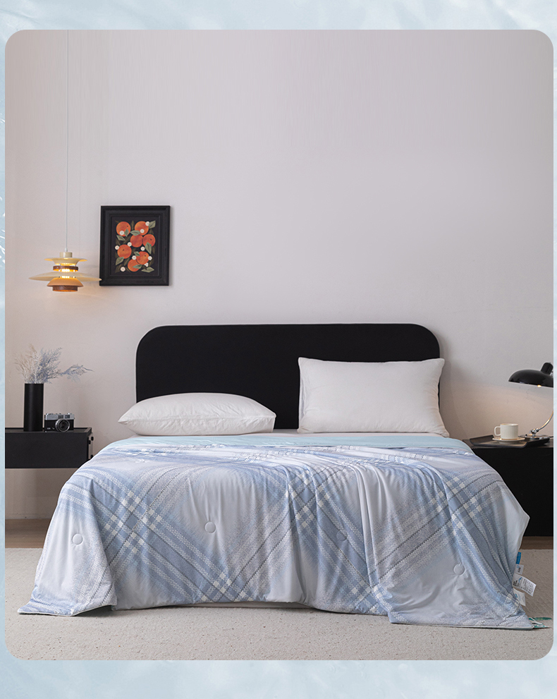 亿莱鑫 2026新款数码印花凉感丝夏被 时尚格纹-蓝