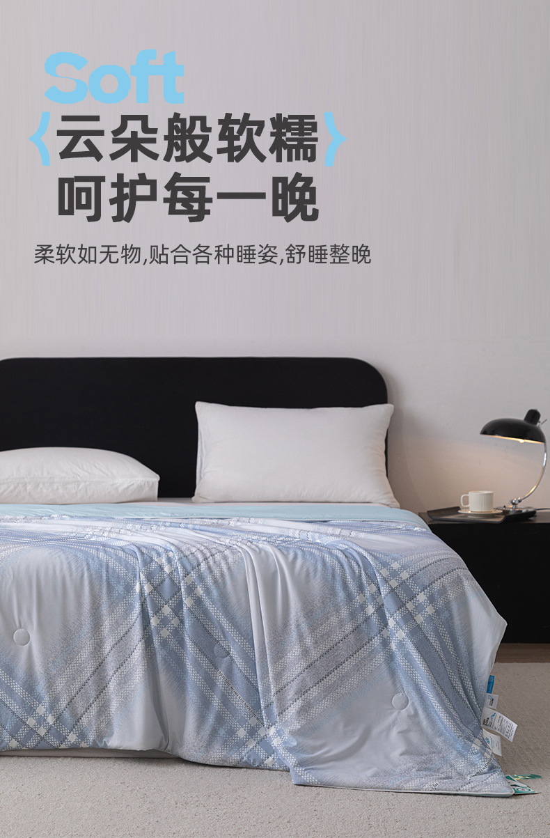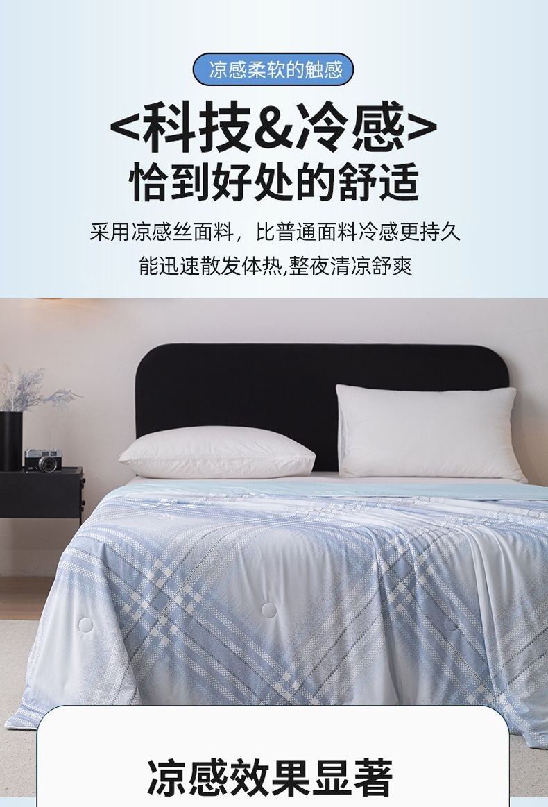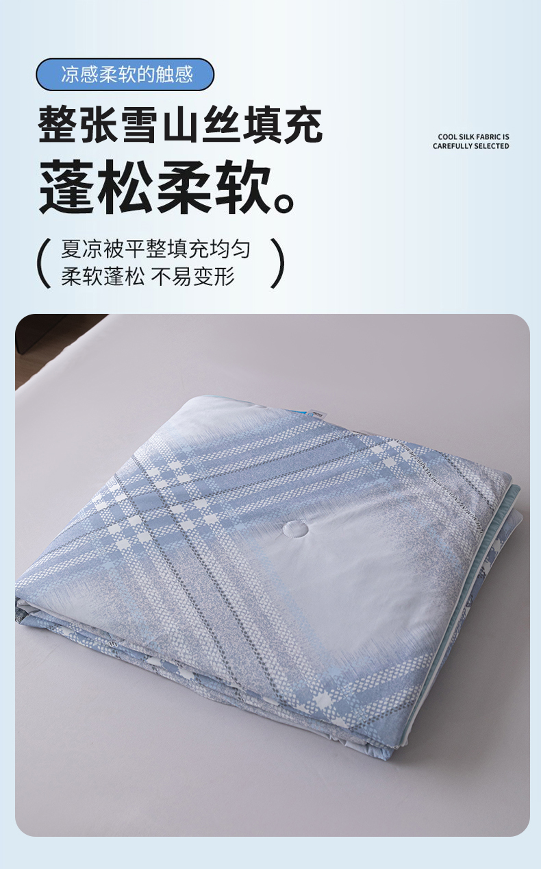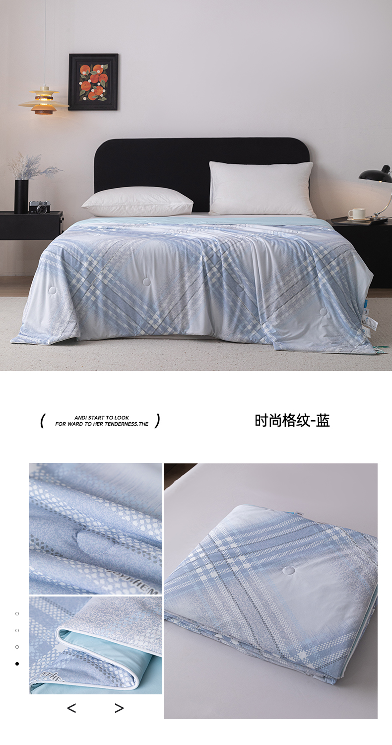 商品名称:亿莱鑫 2026新款数码印花凉感丝夏被 时尚格纹-蓝