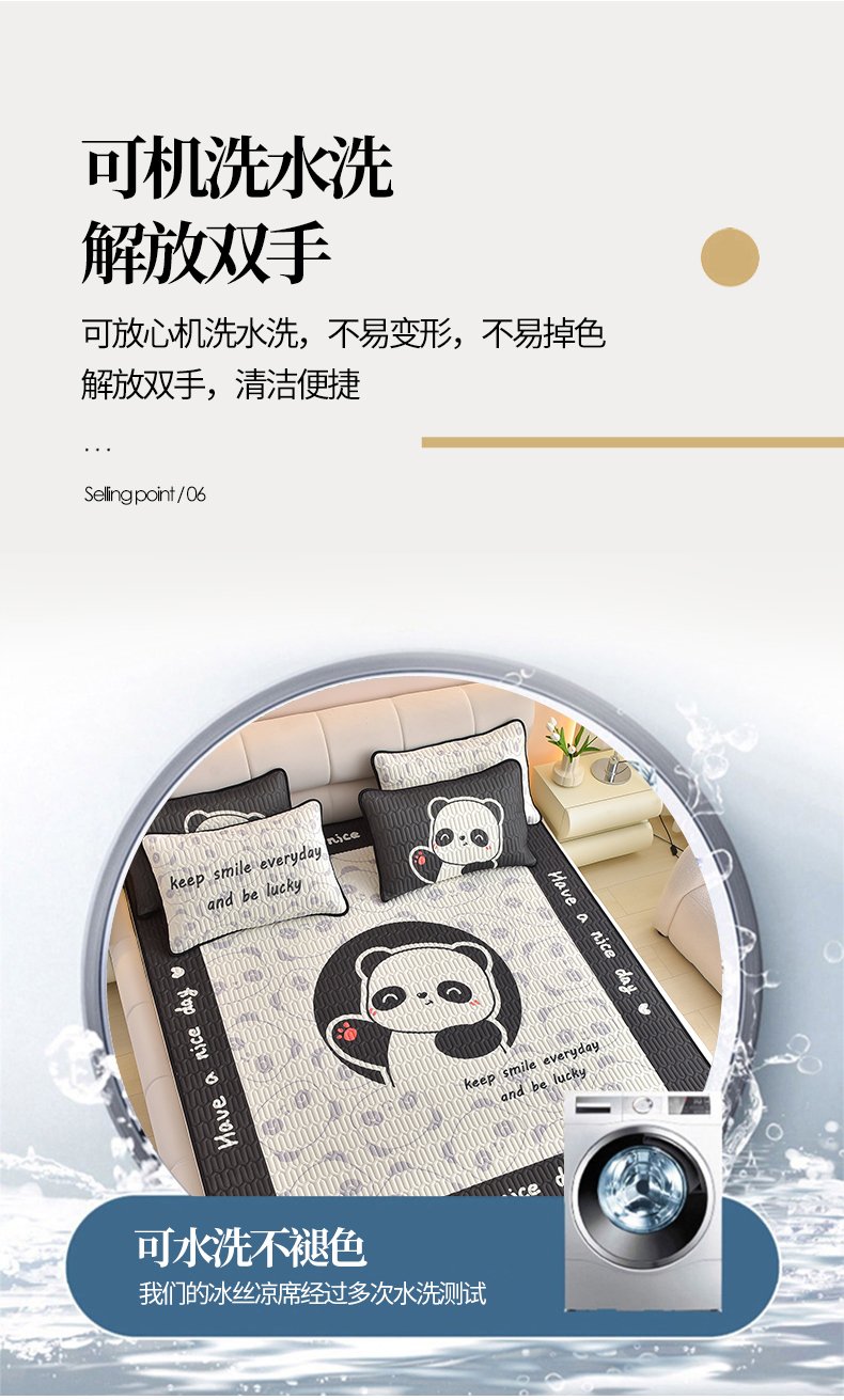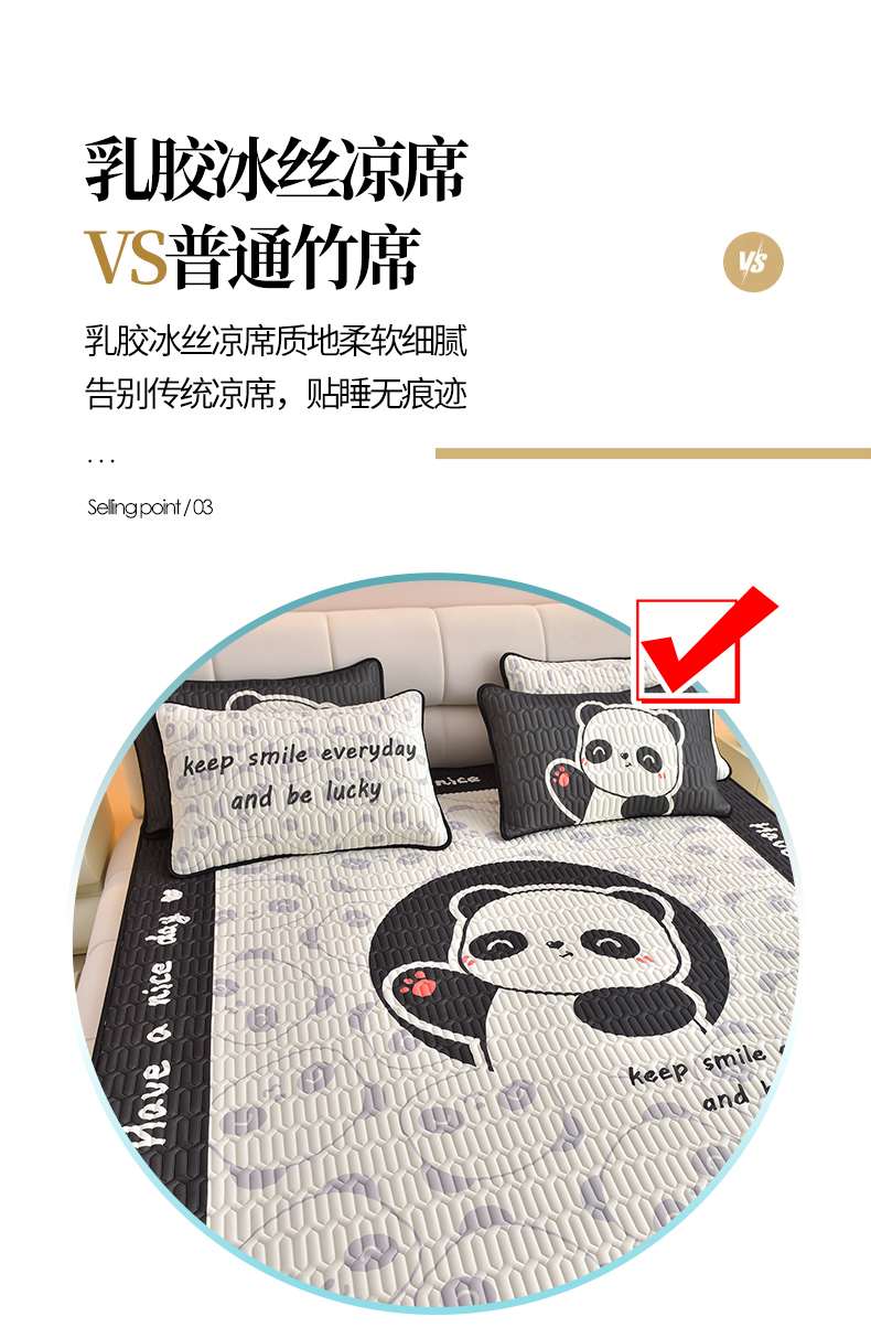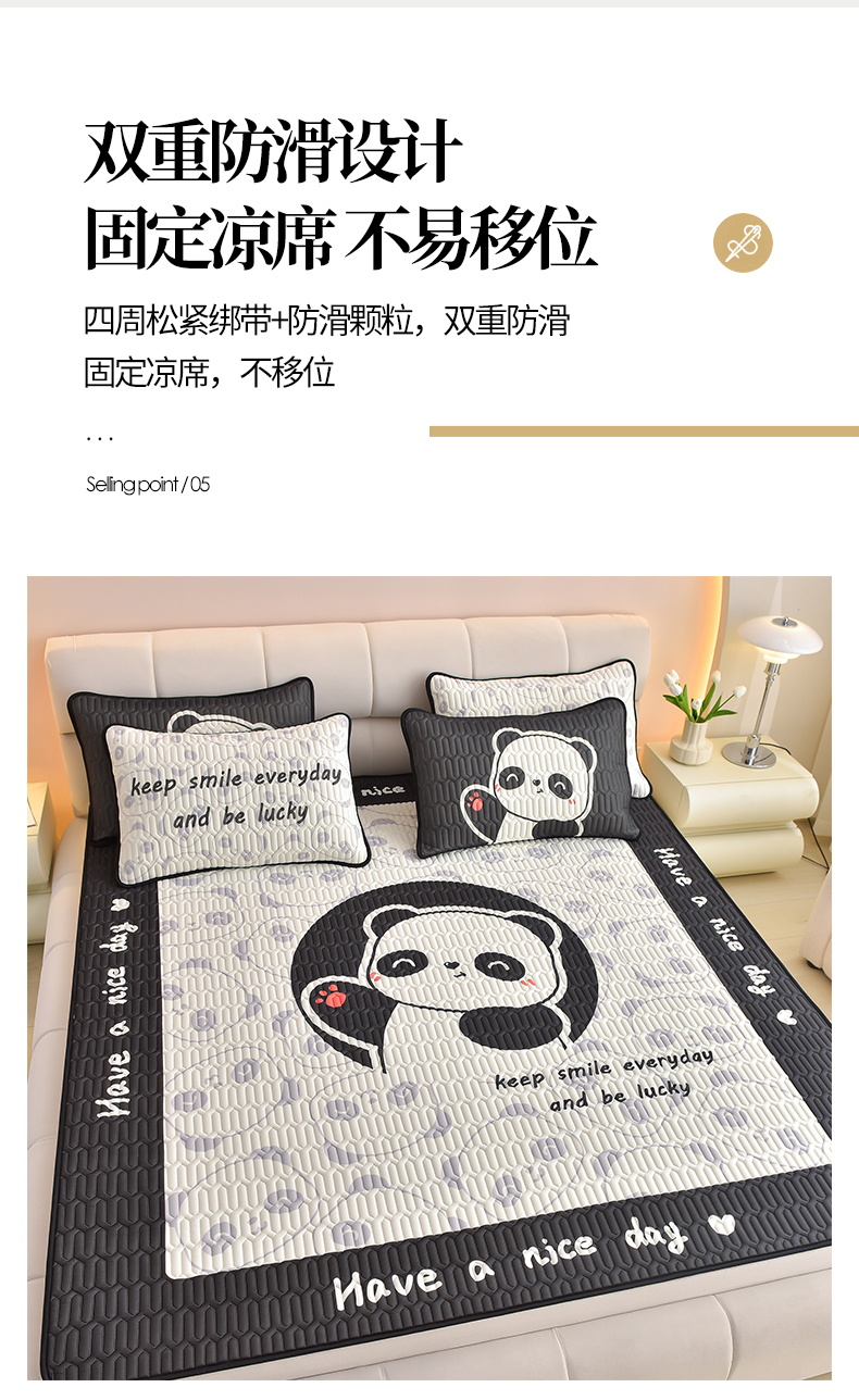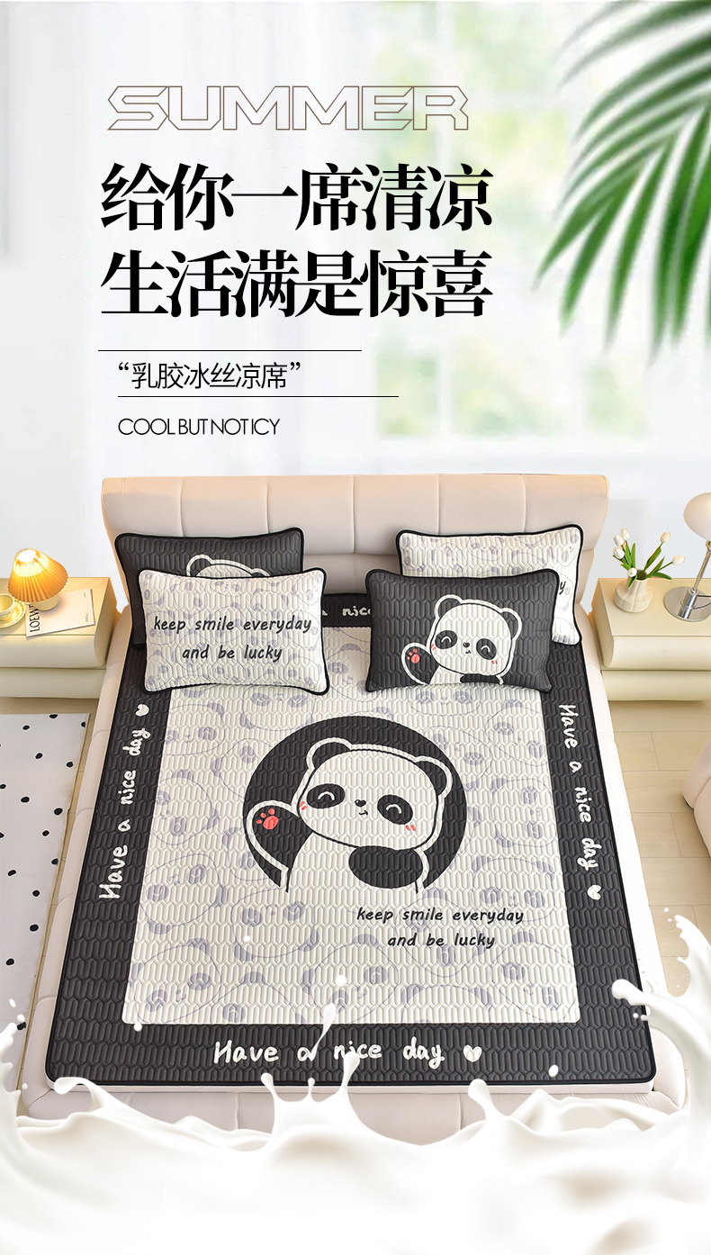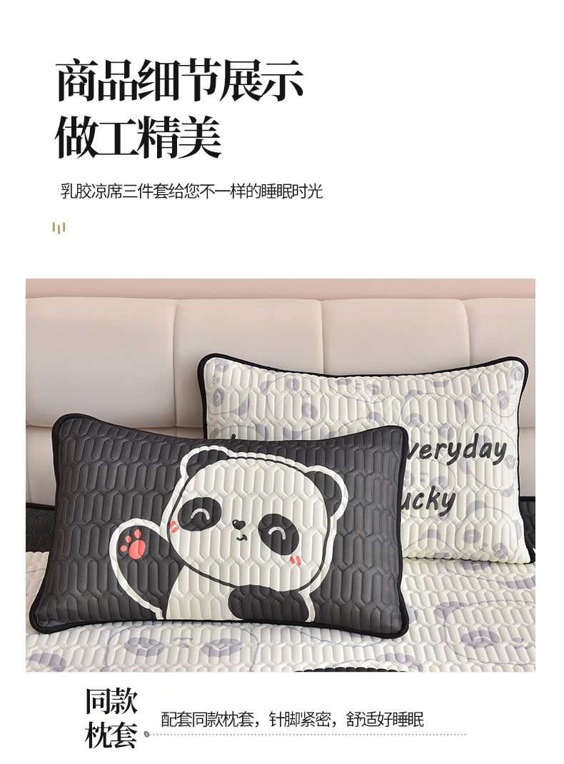 商品名称:炫拼家纺 2026新款凉感丝大版卡通乳胶凉席三件套 小熊猫