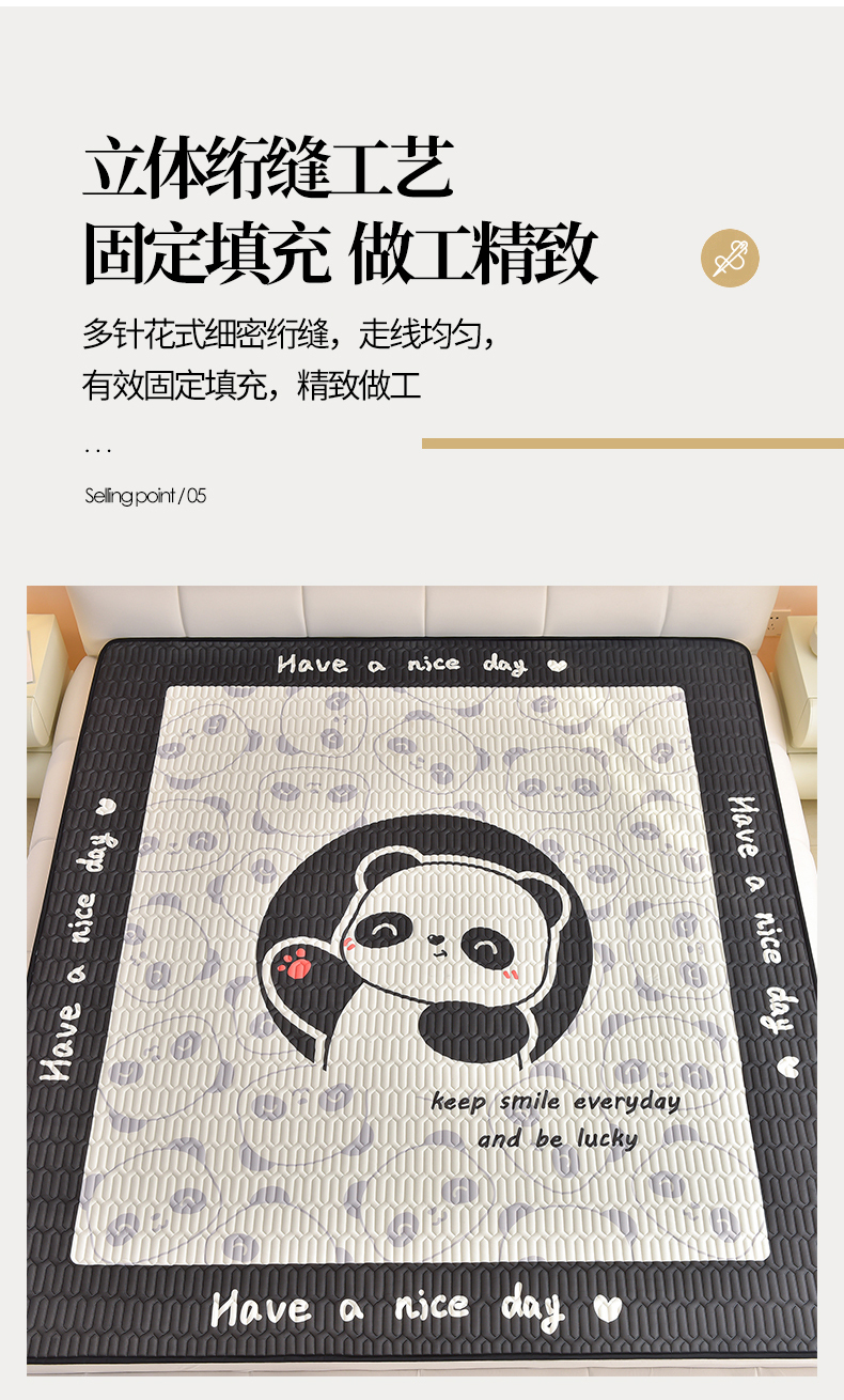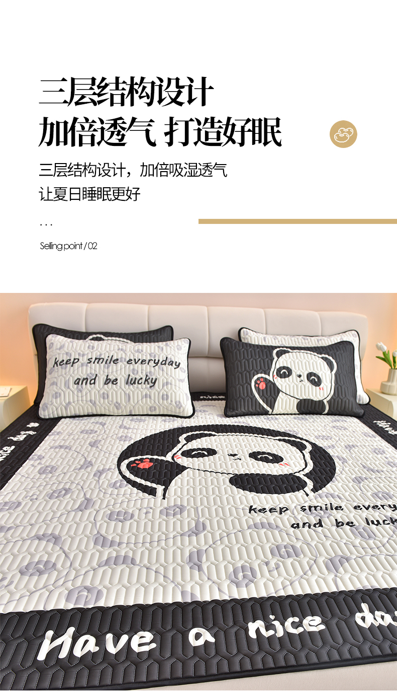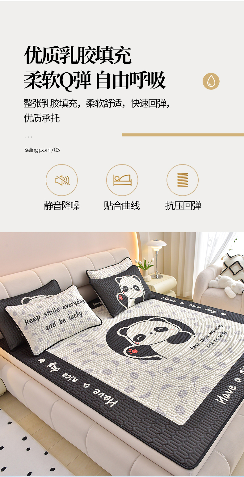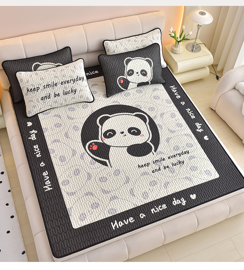 商品名称:炫拼家纺 2026新款凉感丝大版卡通乳胶凉席三件套 小熊猫