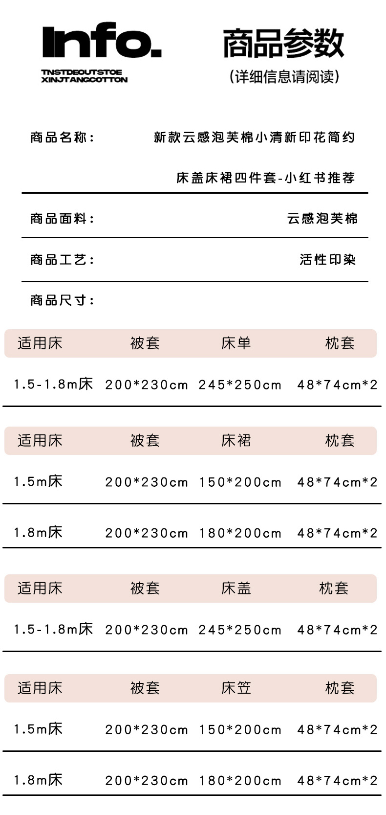 【床笠款】1.5四件套-被套200x230 | ¥65.00 |