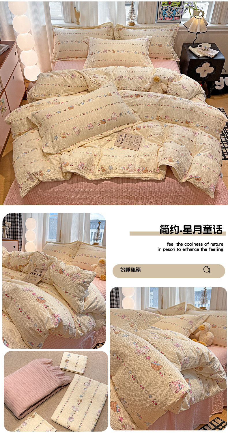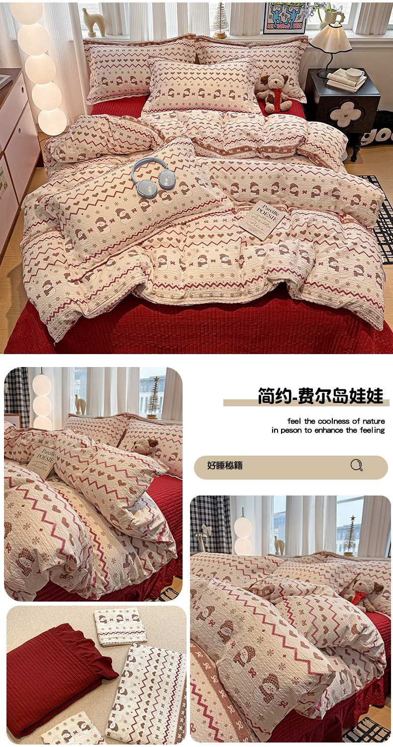 当前位置: 91家纺网 > 商品网购 > 床品套件 > 四件套 > 其它四件套 > 富米莱(原臻工厂) 2026新款云感泡芙棉小清新印花简约床盖床裙四件套一小红书推荐 简约-费尔岛娃娃