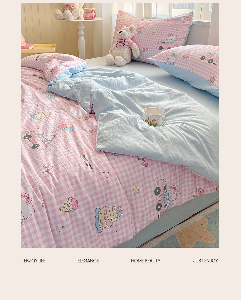 • 91家纺网 家纺一手货源 找家纺 (总)盛秋家纺 2026新款卡通款A类水洗棉印花四件套,爱心猫咪+花朵蓝,格子铺粉+花朵蓝,满山猫+猫爪,软萌汪汪蓝+花朵粉,森林小象蓝+花朵蓝,生日派对+花朵粉,天使小马粉+花朵蓝,田园萌狗+花朵咖,甜茶日记+花朵粉,小狗来信+花朵粉,熊熊乐园+花朵咖,修勾蓝+花朵蓝