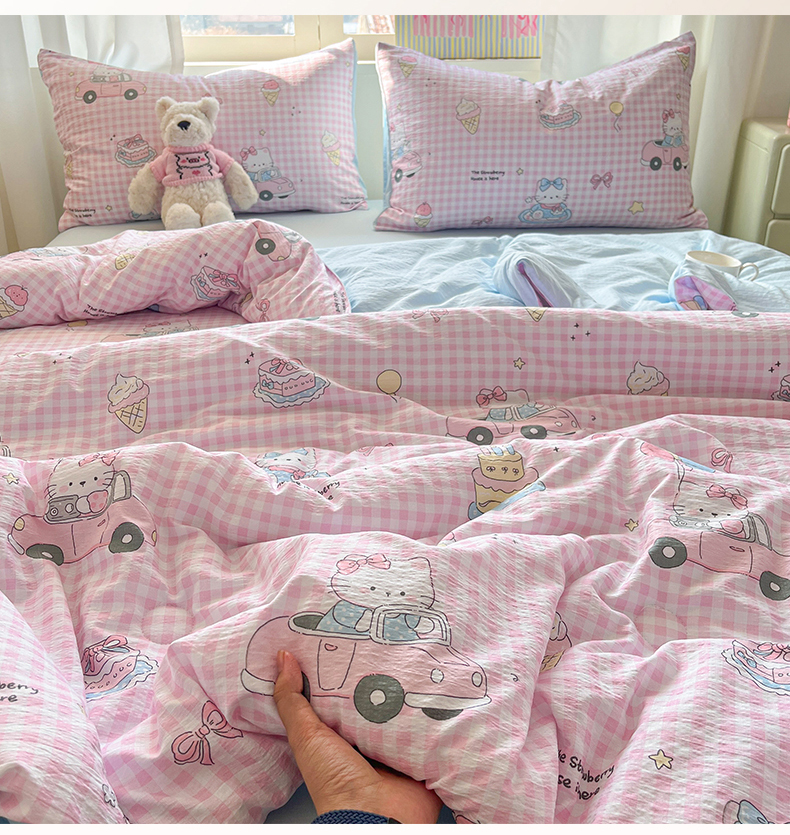 (总)盛秋家纺 2026新款卡通款A类水洗棉印花四件套,爱心猫咪+花朵蓝,格子铺粉+花朵蓝,满山猫+猫爪,软萌汪汪蓝+花朵粉,森林小象蓝+花朵蓝,生日派对+花朵粉,天使小马粉+花朵蓝,田园萌狗+花朵咖,甜茶日记+花朵粉,小狗来信+花朵粉,熊熊乐园+花朵咖,修勾蓝+花朵蓝