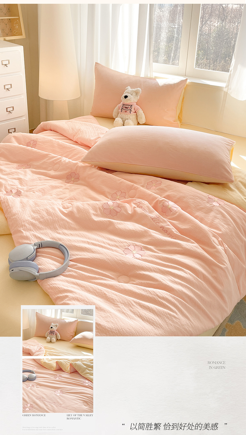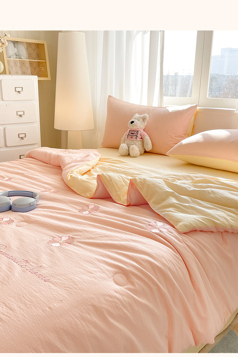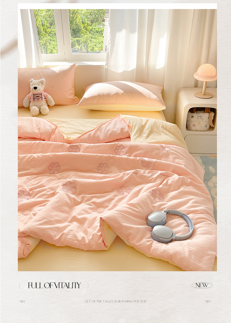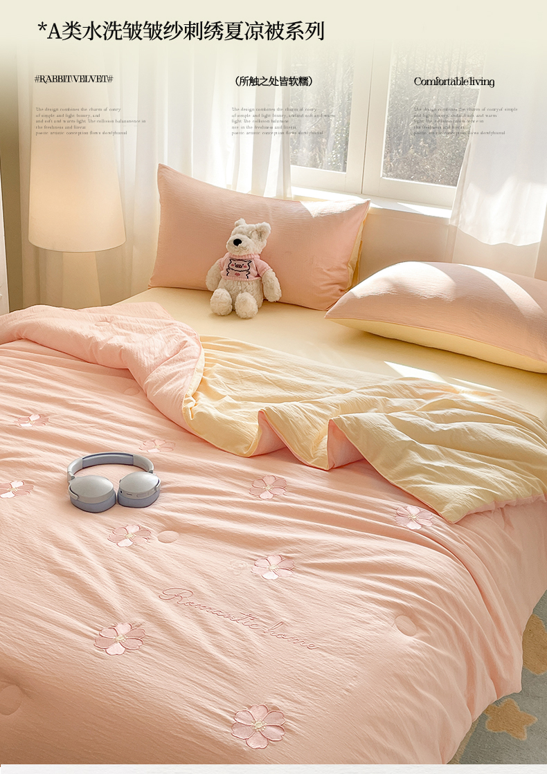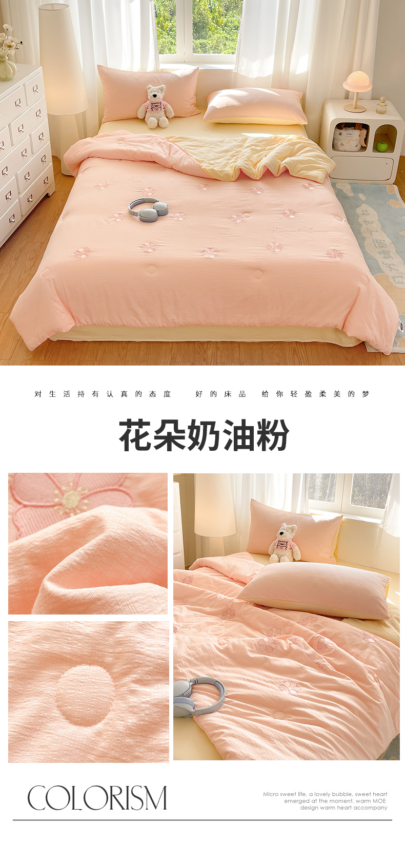 盛秋家纺 2026新款A类水洗棉豆豆夏被系列 甜茶日记+奶油粉,甜茶日记+奶油粉