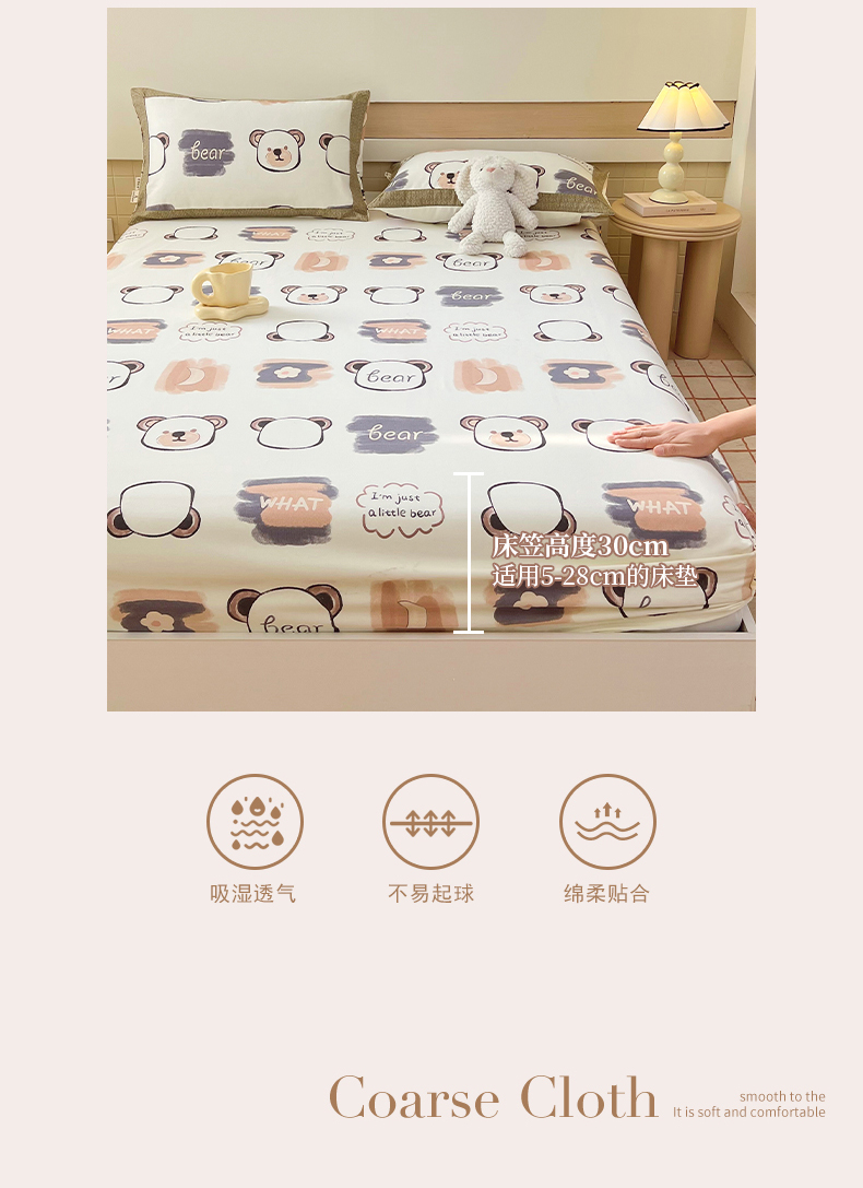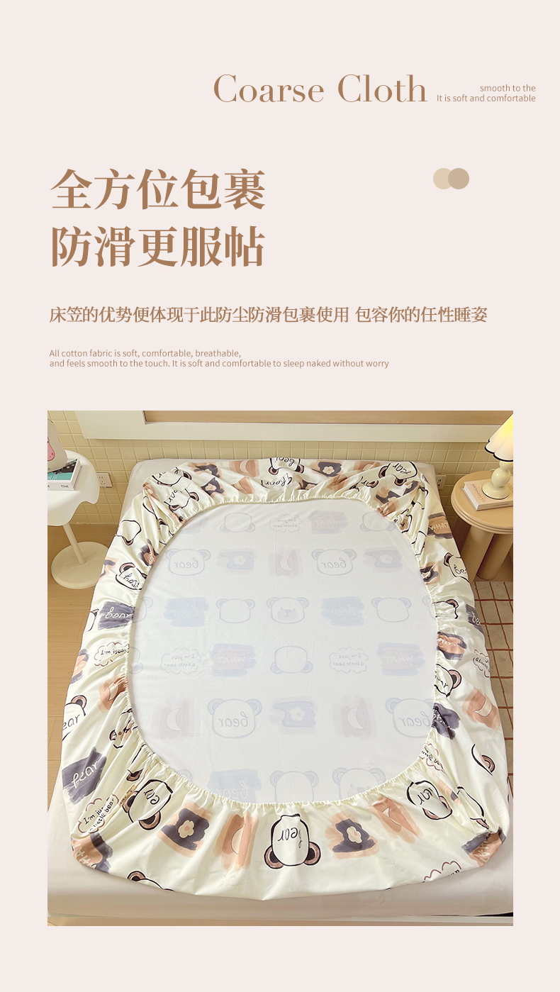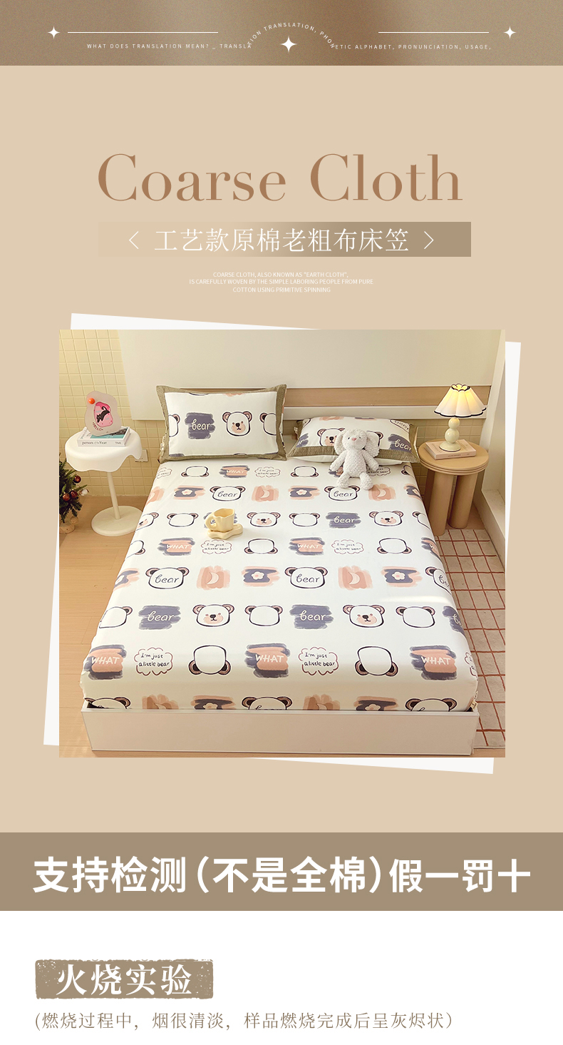 商品名称:春皖家纺 2026新款全棉老粗布工艺款单床笠床笠单件 幸运熊