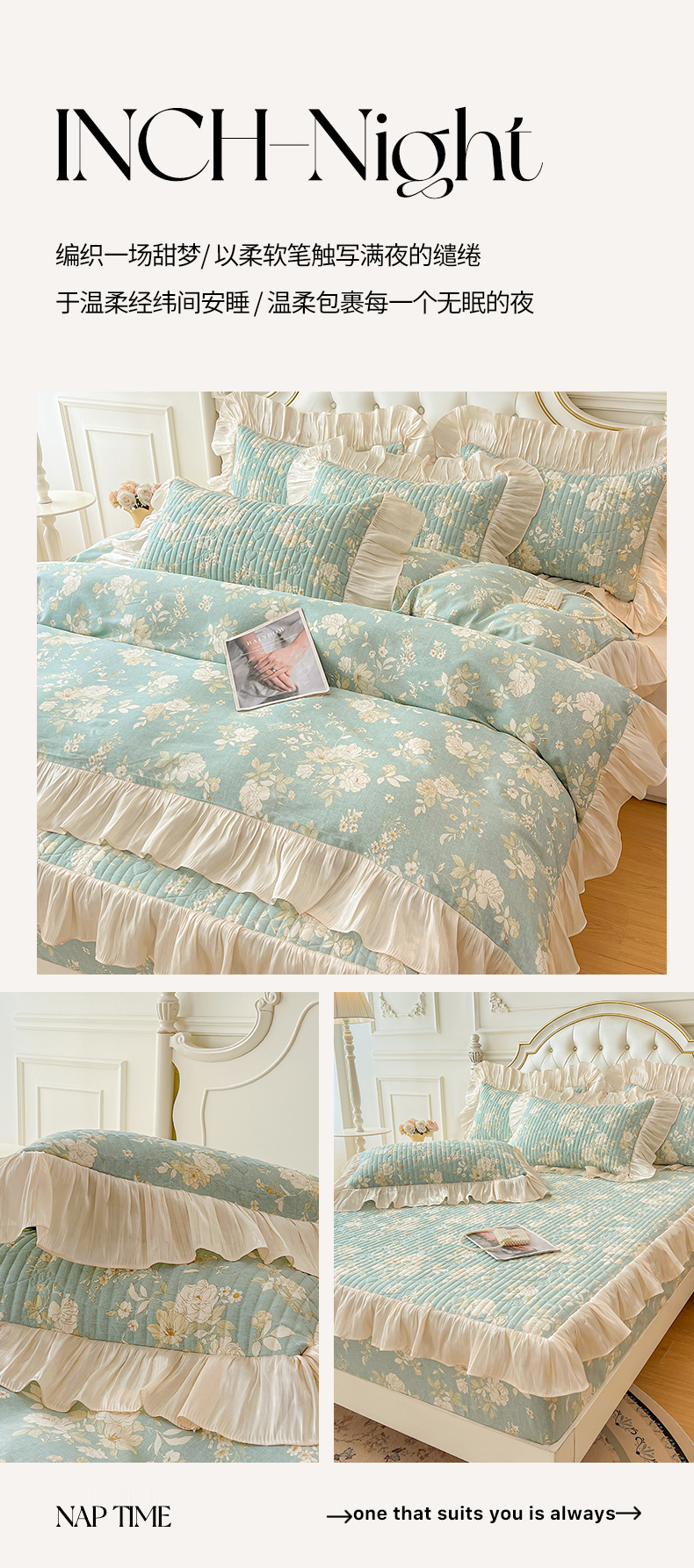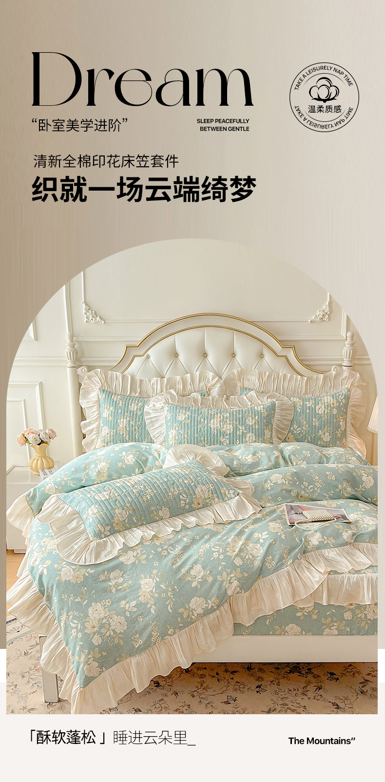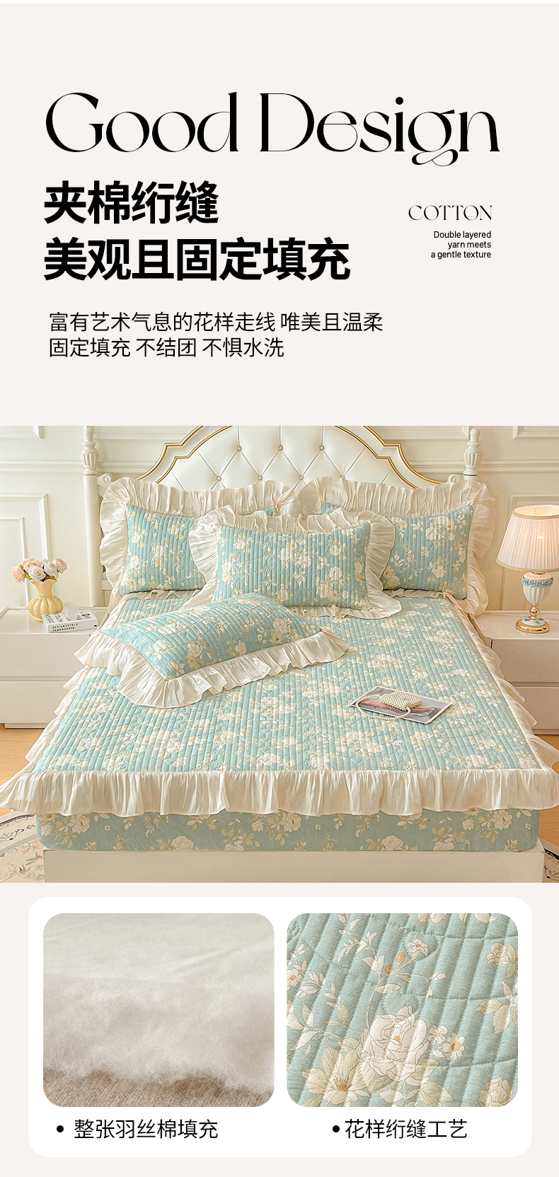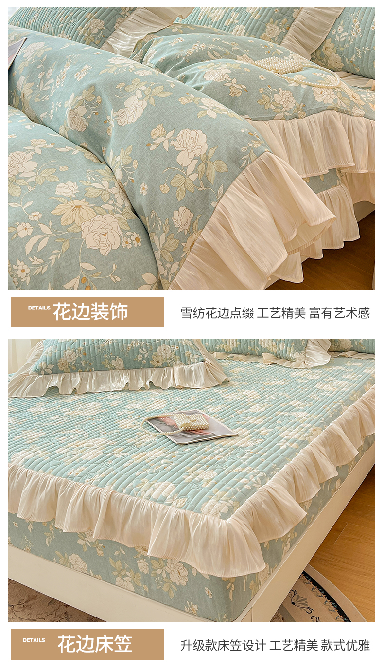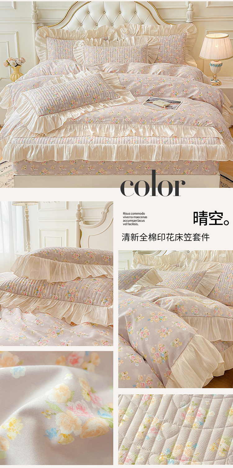 (总)宜凡家纺 2026新款全棉夹棉公主风床笠三件套,尘世浮华,春日微光,花黛织梦,曼妙花香,晴空,寻觅花季