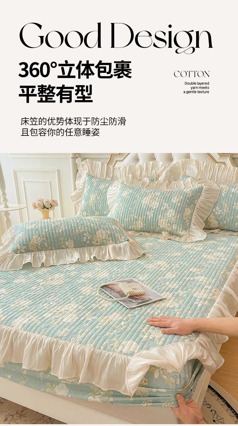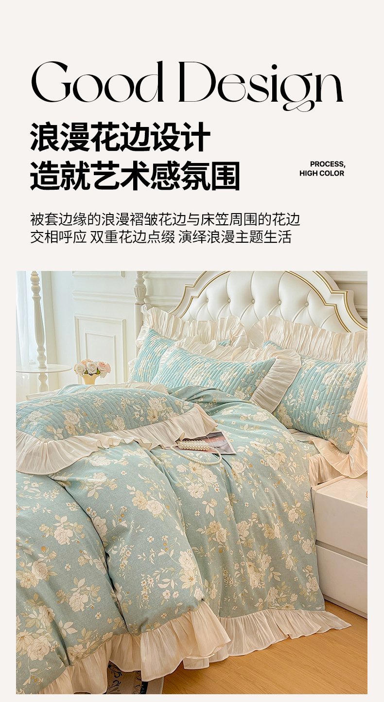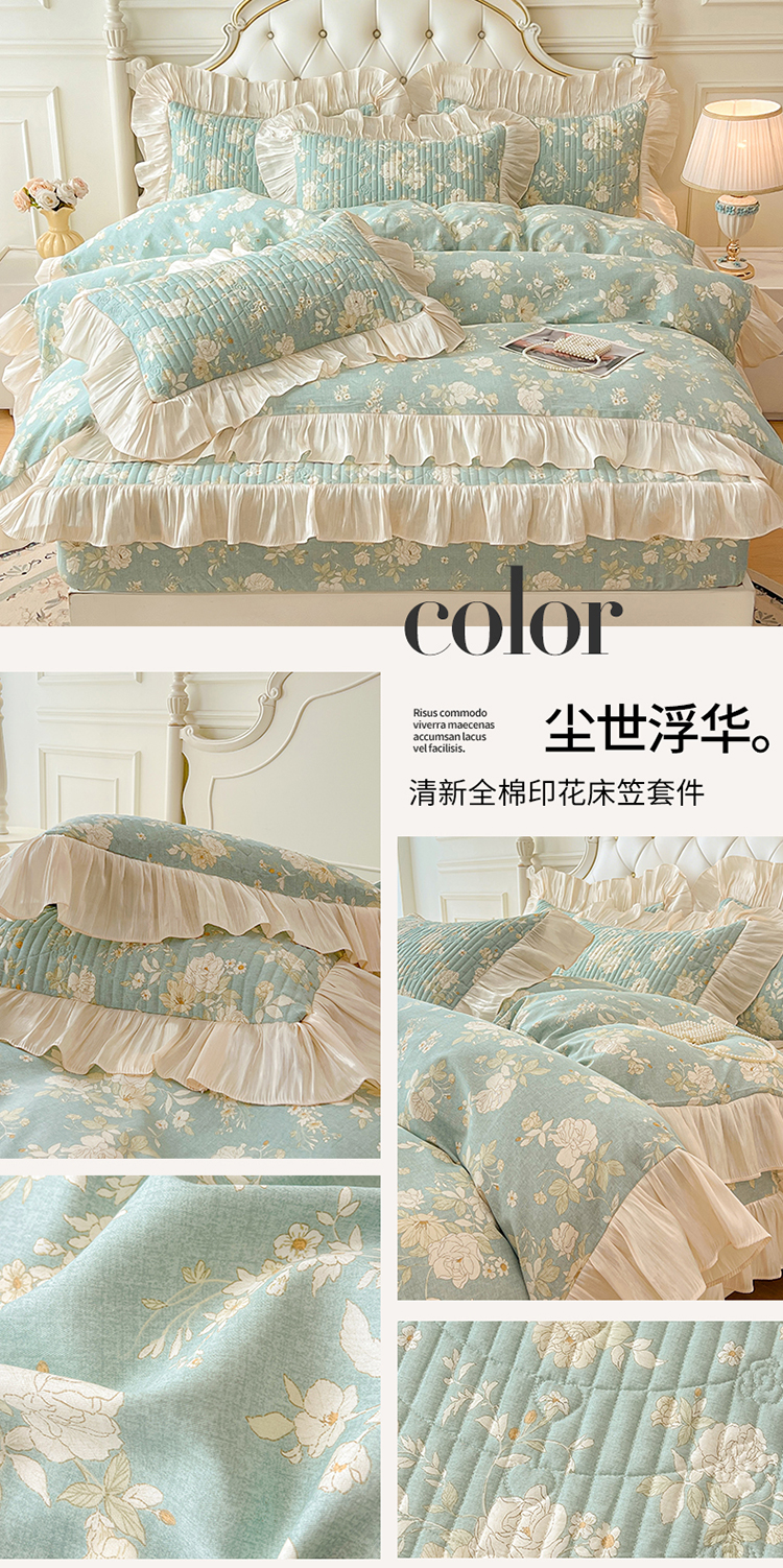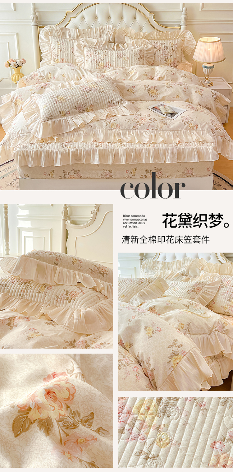 (总)宜凡家纺 2026新款全棉夹棉公主风床笠四件套