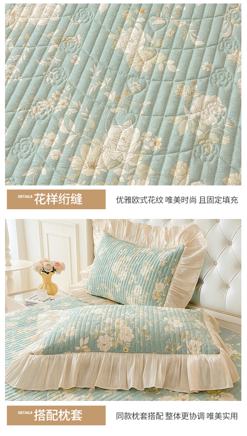 (总)宜凡家纺 2026新款全棉印花公主风夹棉床盖三件套,逐梦,假日,可颂,梦娜,木槿,乔屿