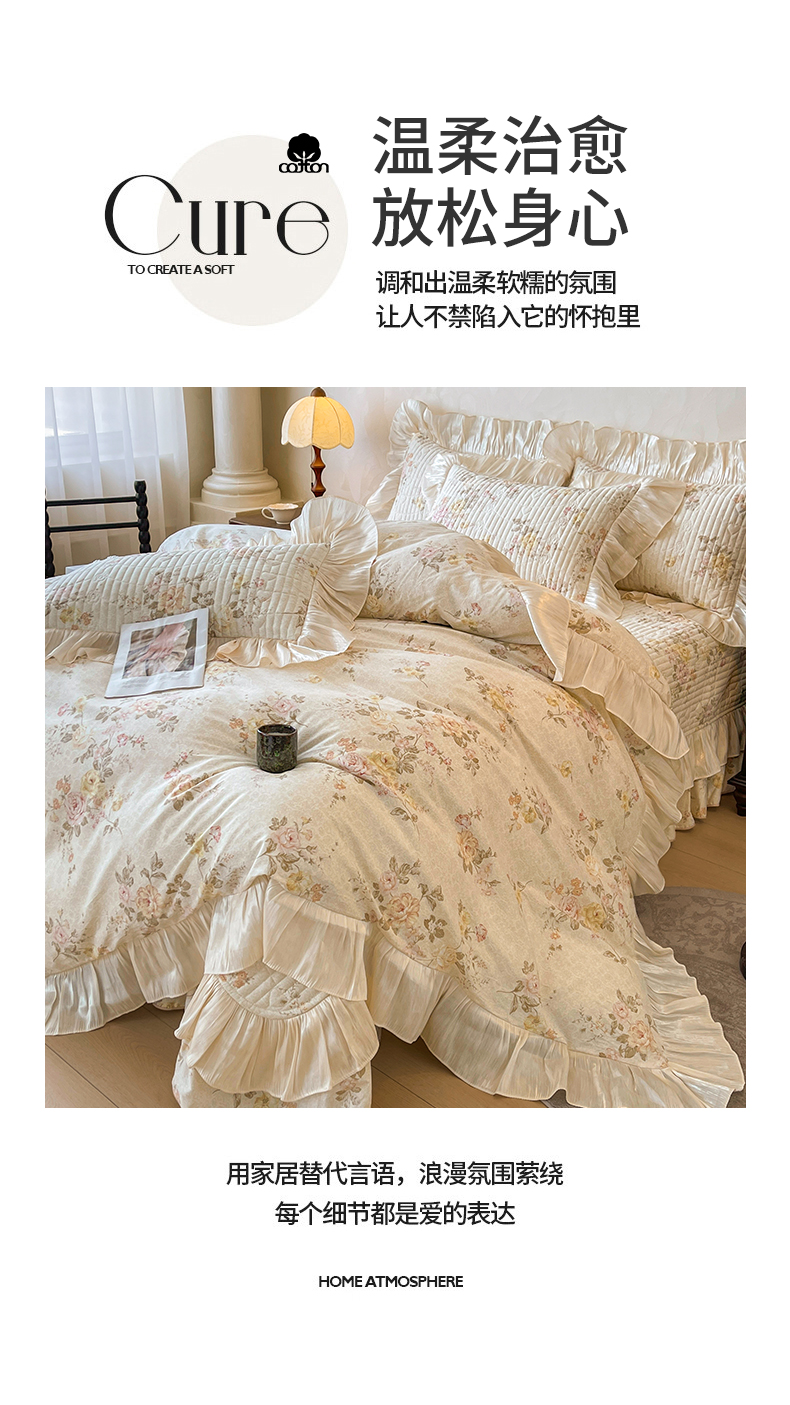 当前位置: 91家纺网 > 商品网购 > 床品套件 > 四件套 > 其它四件套 > 宜凡家纺 2026新款全棉印花公主风夹棉床盖四件套 逐梦