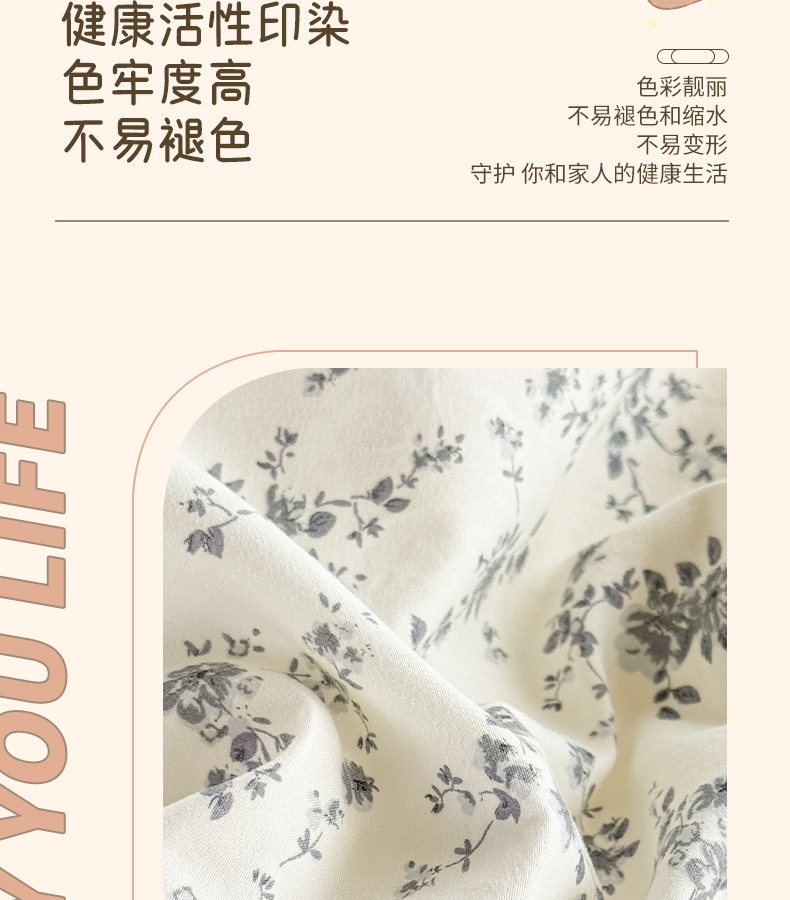 (总)禧缘家纺(原梦想家) 2026新款小清新皱皱纱木棉床裙式床笠印花单被套,彩虹,蝶梦,花田,沐春,南瓜,泡芙,甜筒,童话,兔兔,雾迟,星星,月光