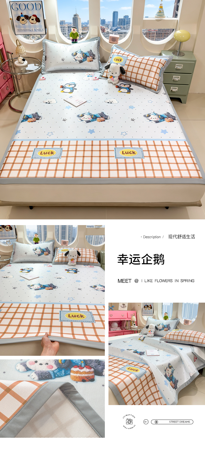 (总)丝羽坊 2026新款小版印花碳光冰丝凉席床笠款,星梦喵屋,蓝花熊语,小甜心,云漫花絮,兔宝,星光灿烂,彩色心愿,春日猫记,蛋糕猫,黑蝴蝶,花甜猫,绿叶,猫叙花间,萌宠甜心,小犬时光,幸运企鹅,叶语