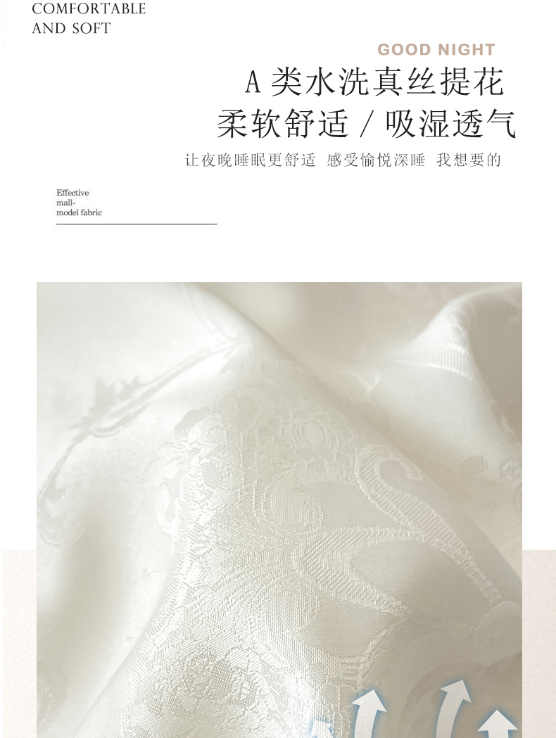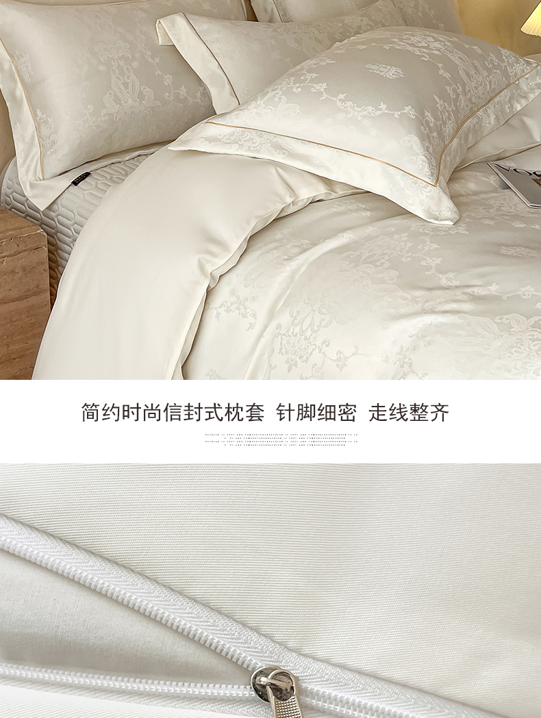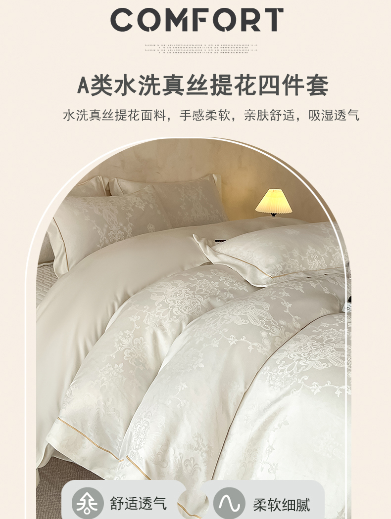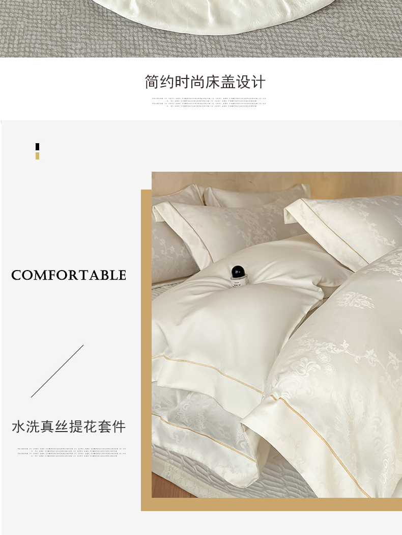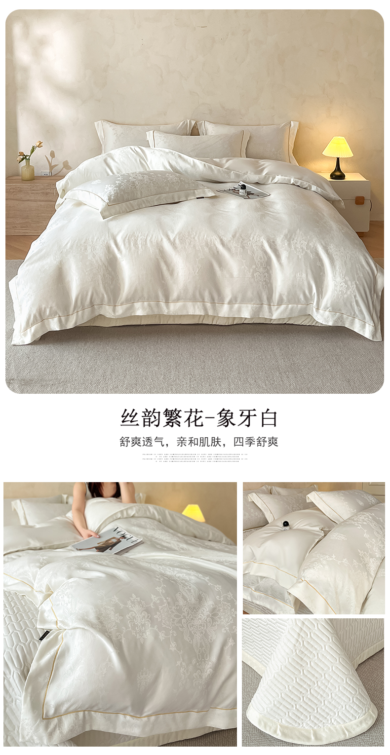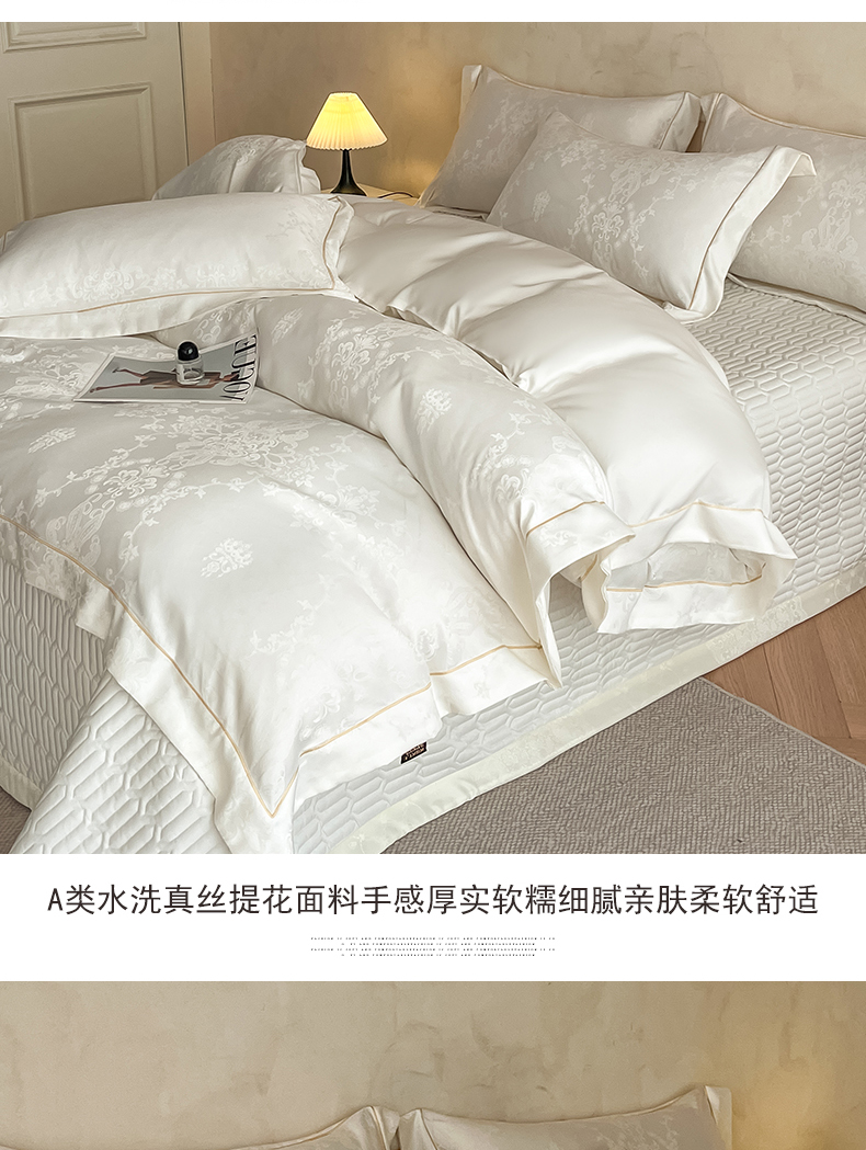 商品名称:大麦家纺 2026新款水洗真丝提花床盖四件套丝韵繁花 丝韵繁花-象牙白