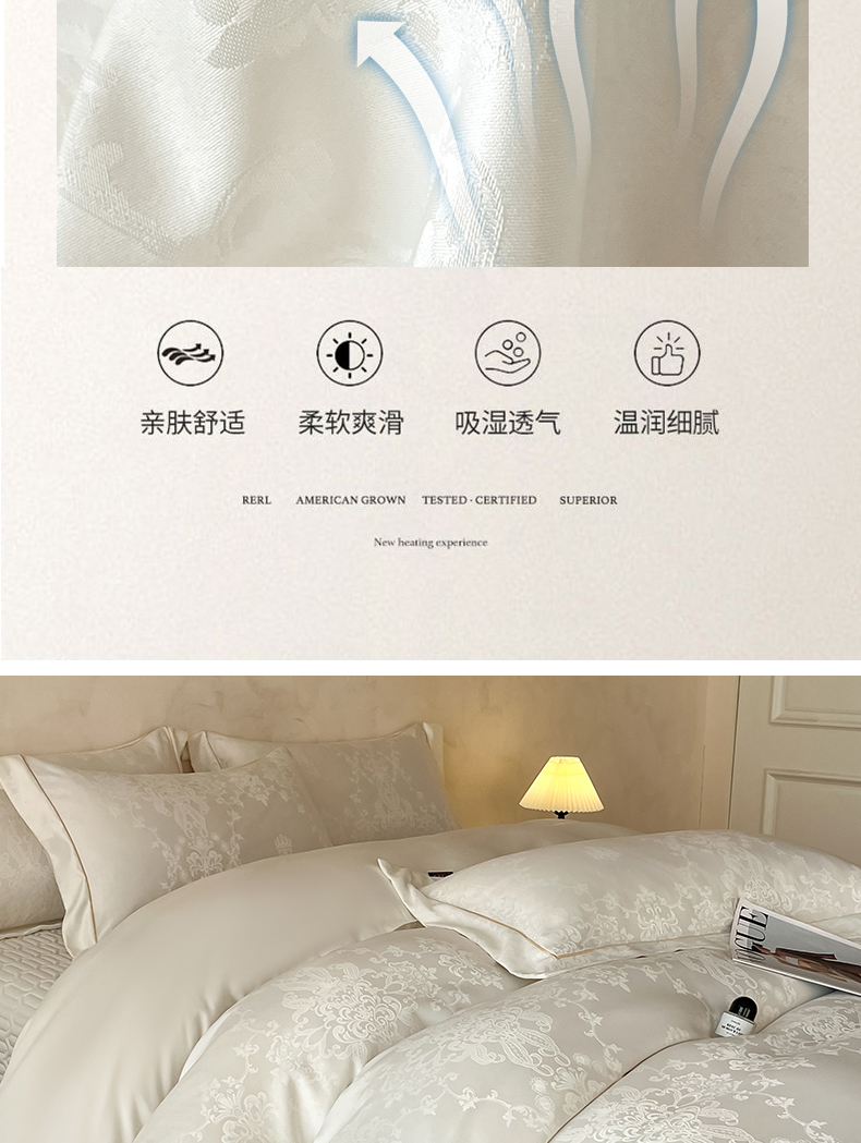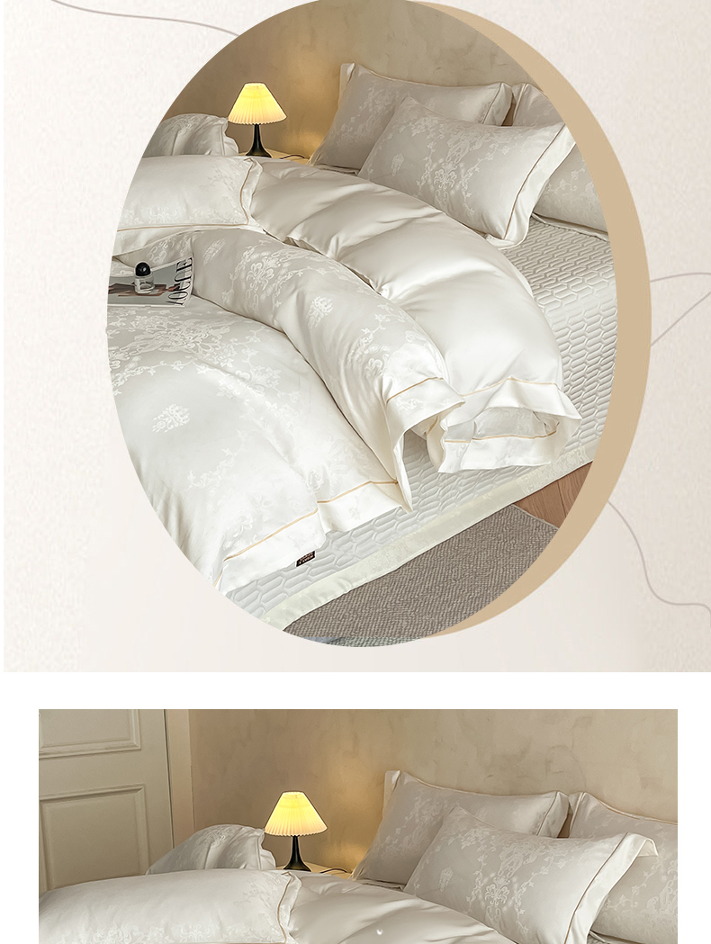大麦家纺 2026新款水洗真丝提花床盖四件套丝韵繁花 丝韵繁花-象牙白