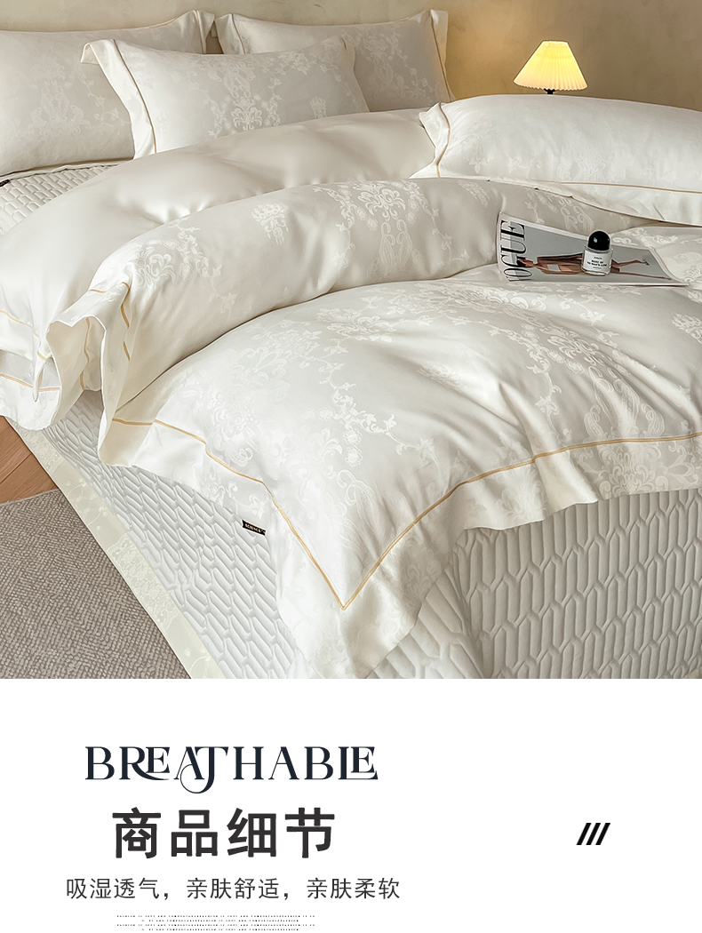 (总)大麦家纺 2026新款法式花边天丝床盖四件套,浮光滟,浮生如梦,流虹霰,霞月韵