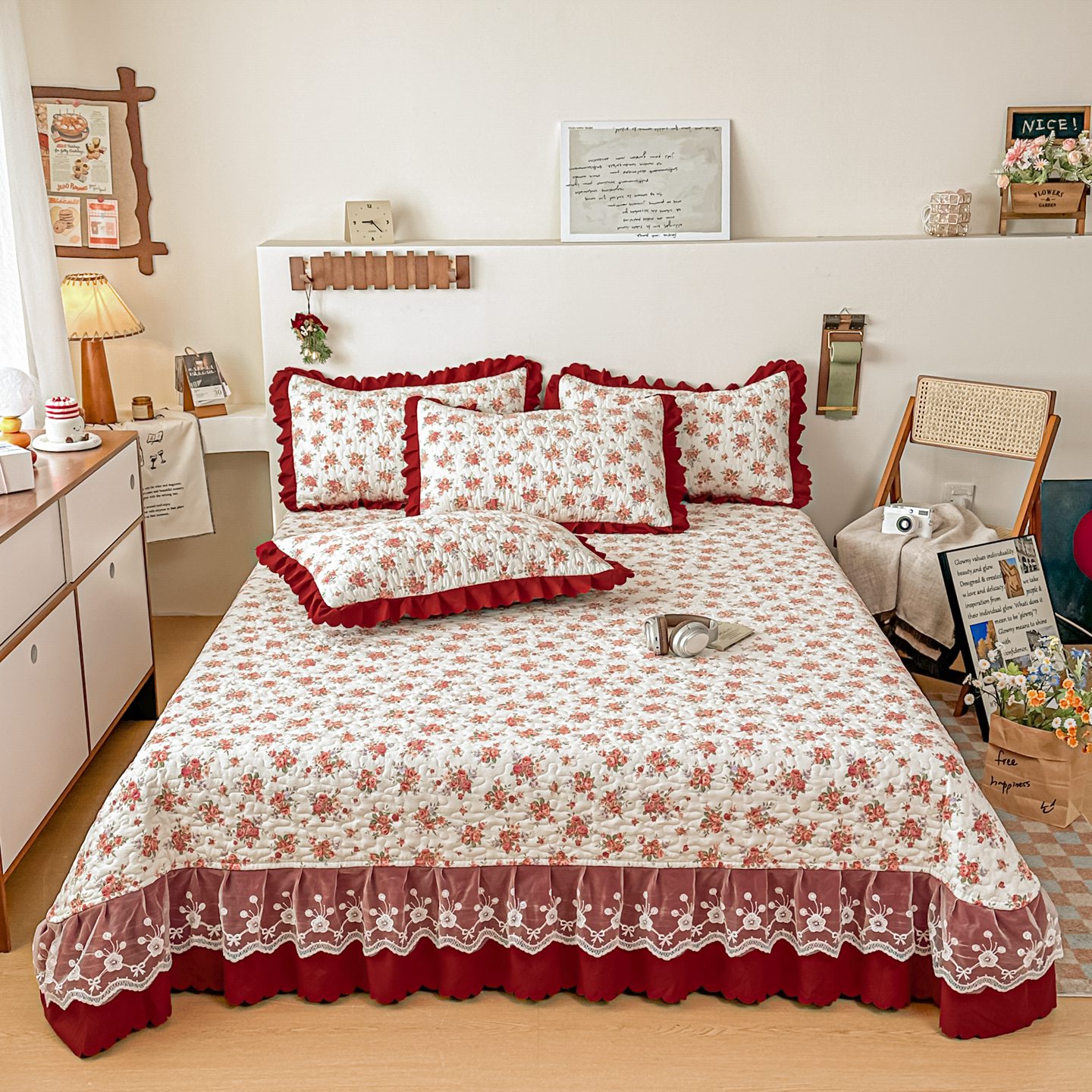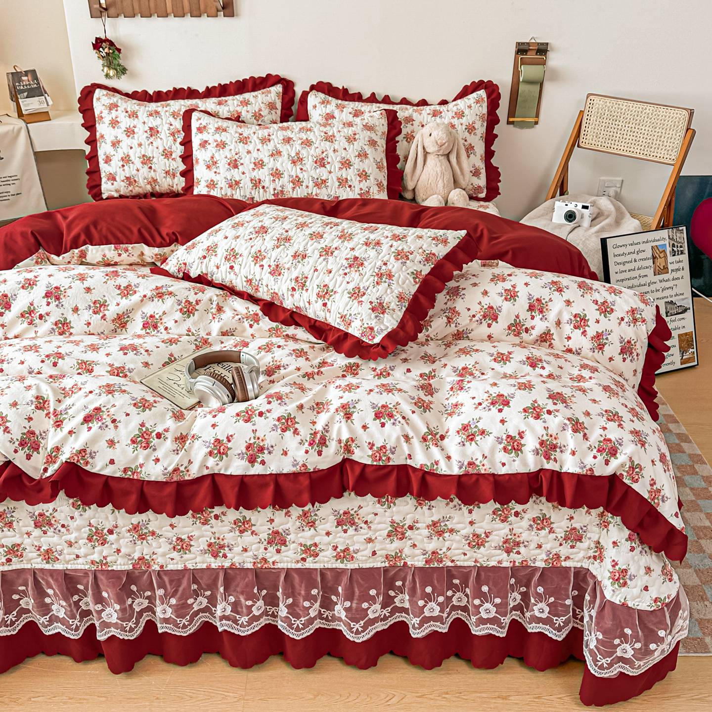 • 91家纺网 家纺一手货源 找家纺 (总)雅眠居 2026直播爆款泡芙棉双层蕾丝花边床盖四件套,红色小马,莫奈花园,甜心-粉,甜心-灰,甜心-蓝,甜心-绿,甜心-紫,薰衣草,织梦时空