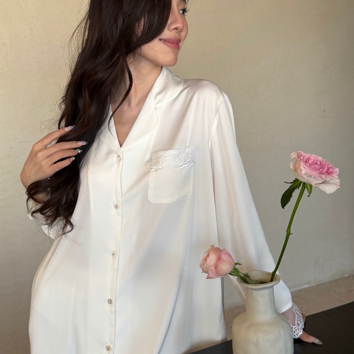 当前位置: 91家纺网 > 商品网购 > 居家日用 > 睡衣/家居服套装 > 妍景家居生活馆 2026春夏新款冰雪丝-后背蕾丝套装家居服 冰雪丝-后背蕾丝套装-白色