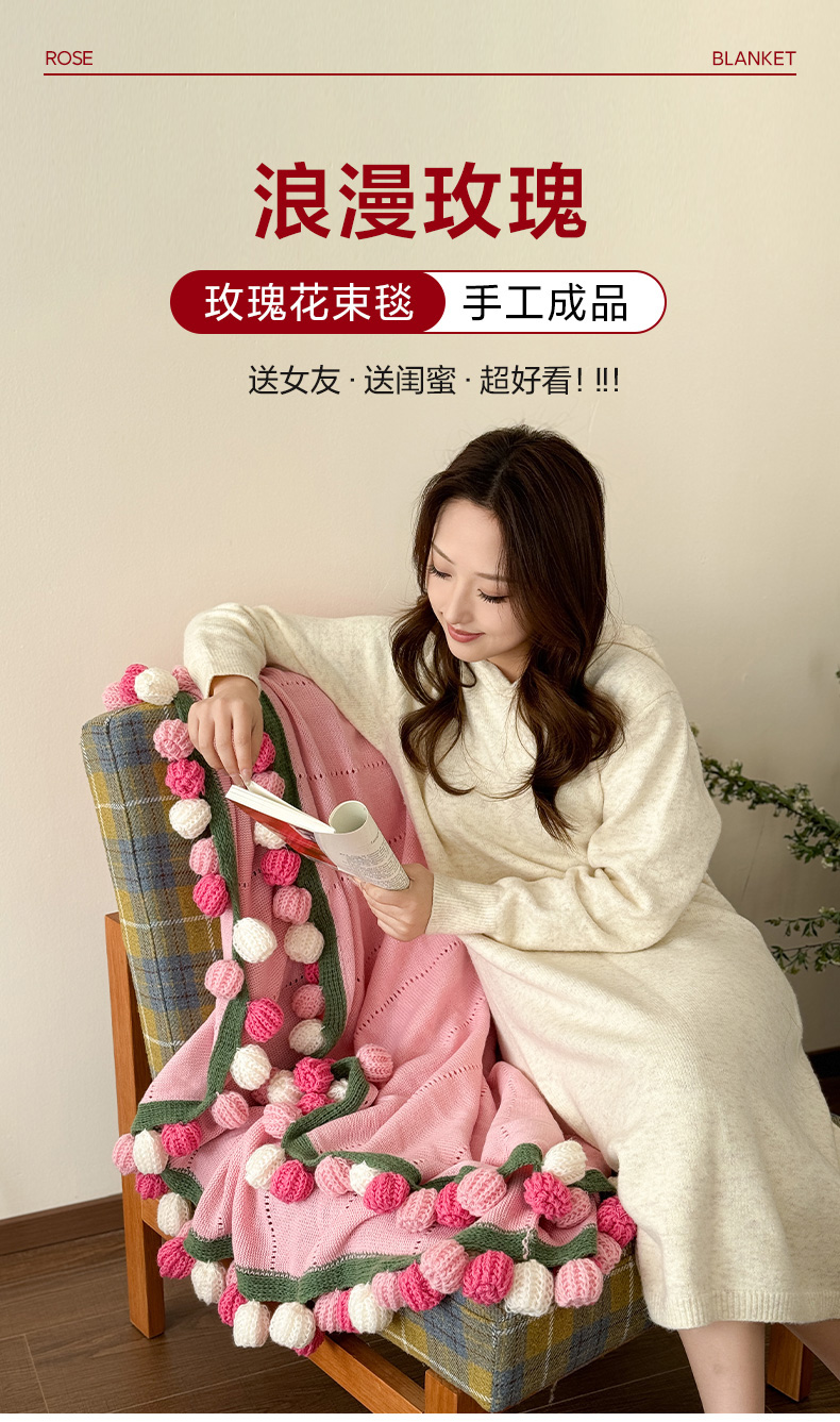 (总)丹本家纺 2025春夏新款A类爆款玫瑰花束毯多功能玫瑰花毯车载办公室盖毯毛毯毯子,玫瑰花束毯