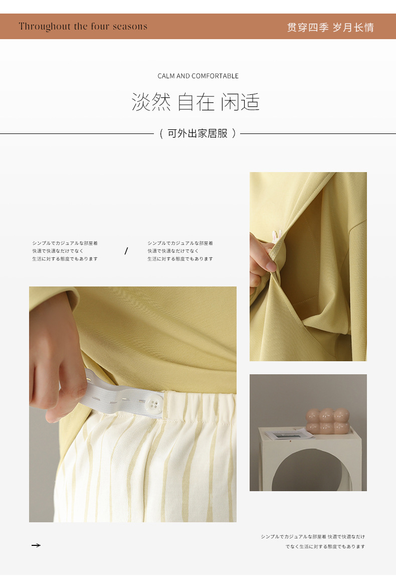 (总)洛兰沙家居馆 26春季新款睡衣韩国ins家居服棕色大波浪纹长袖长裤女士居家套装,花色1