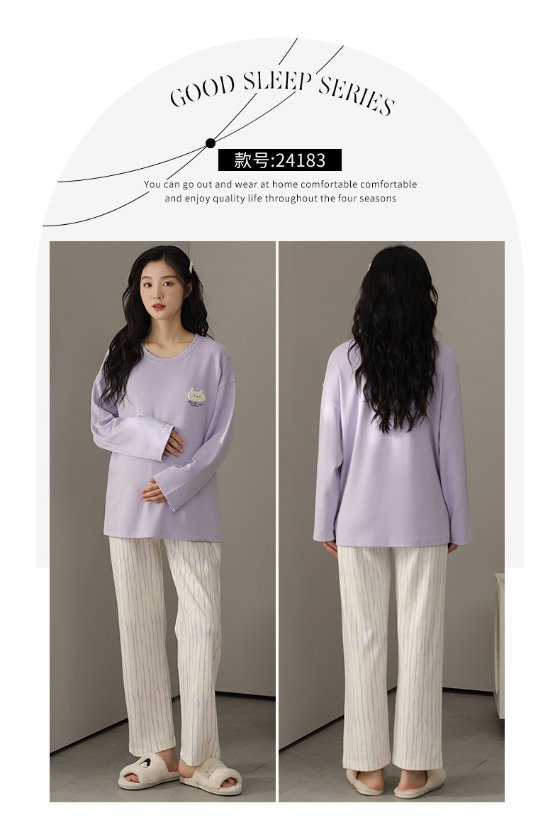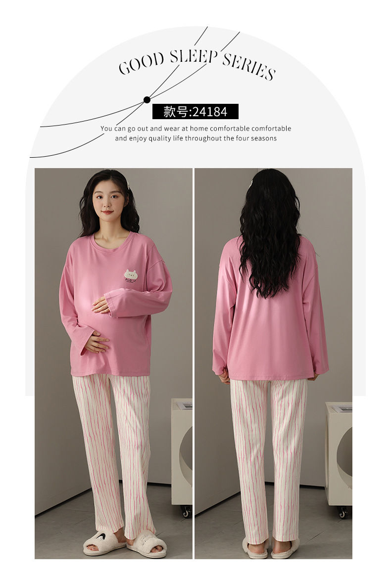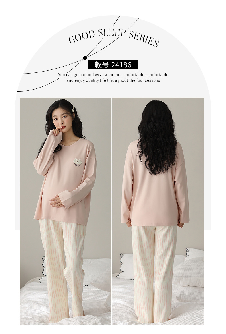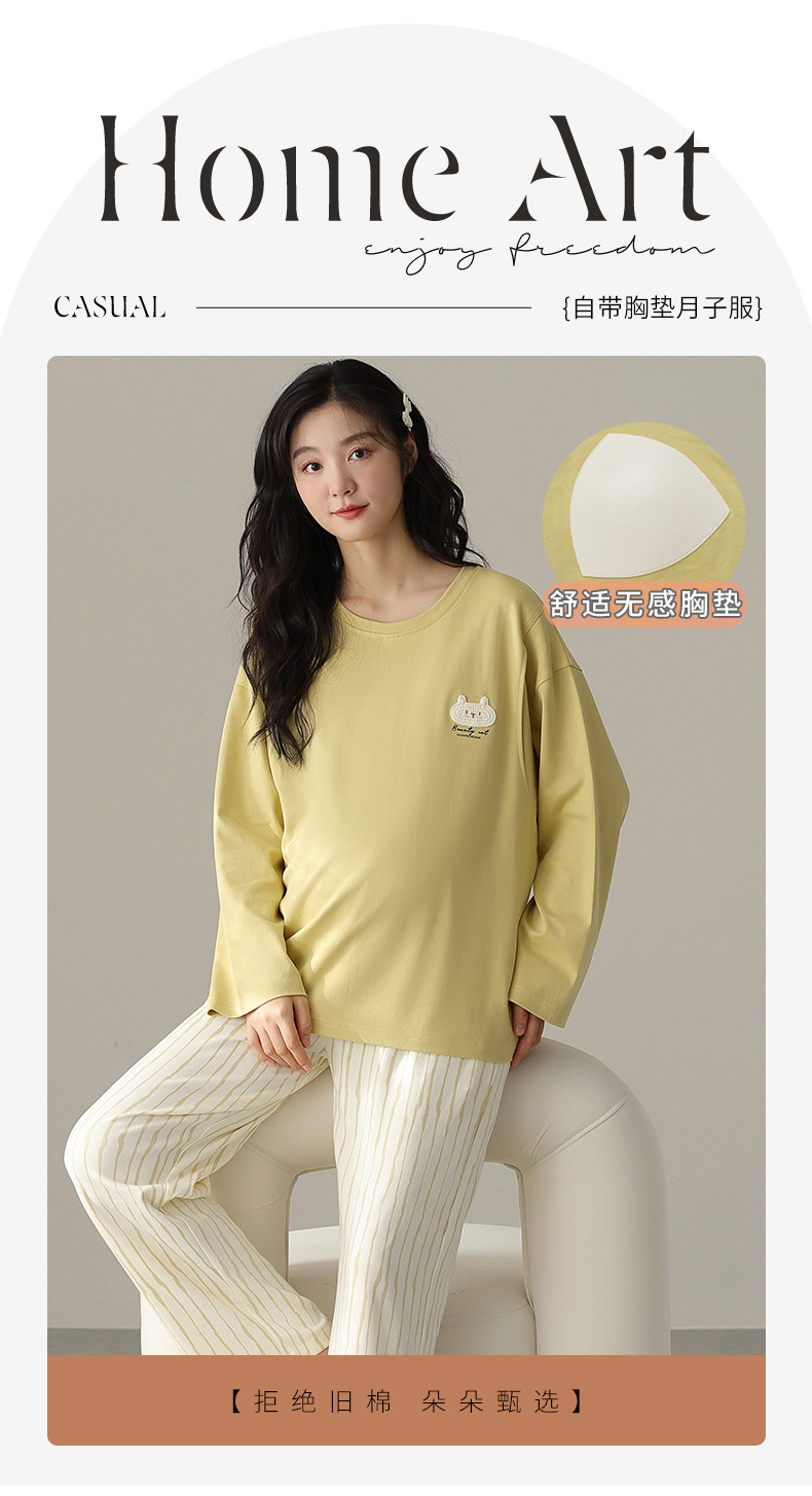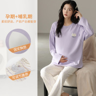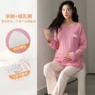 (总)洛兰沙家居馆 春秋带胸垫纯棉月子服新款孕妇甜美可爱哺乳吸汗透气哺乳睡衣