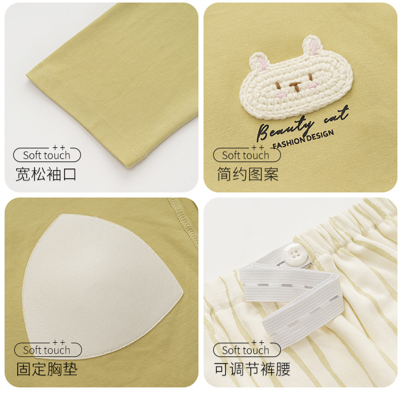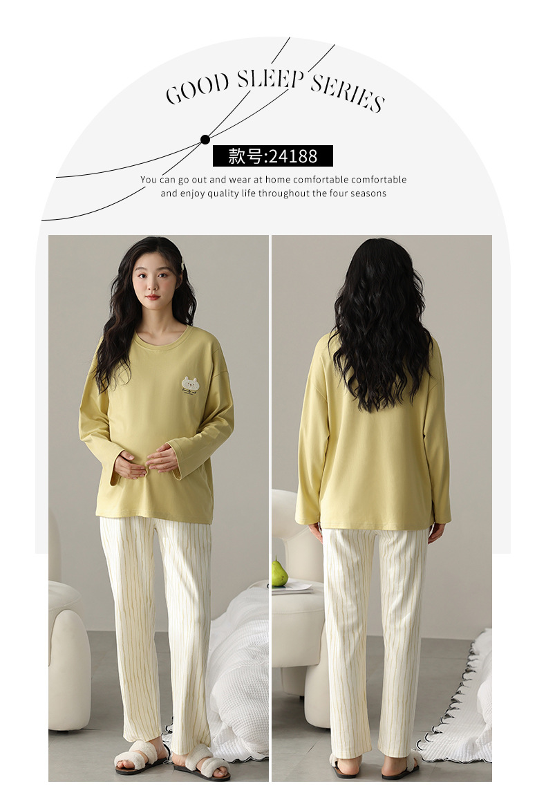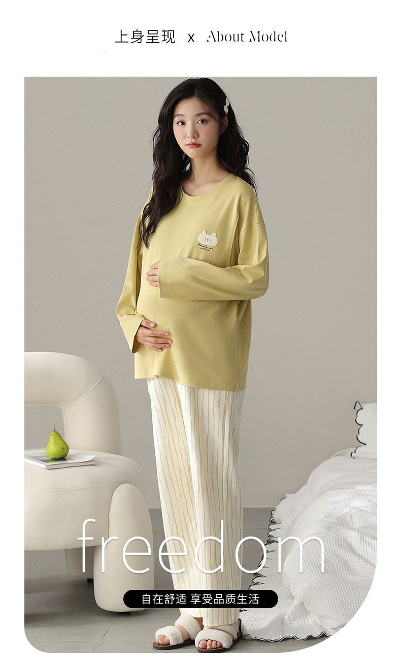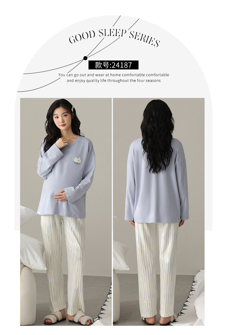 (总)洛兰沙家居馆 春秋带胸垫纯棉月子服新款孕妇甜美可爱哺乳吸汗透气哺乳睡衣