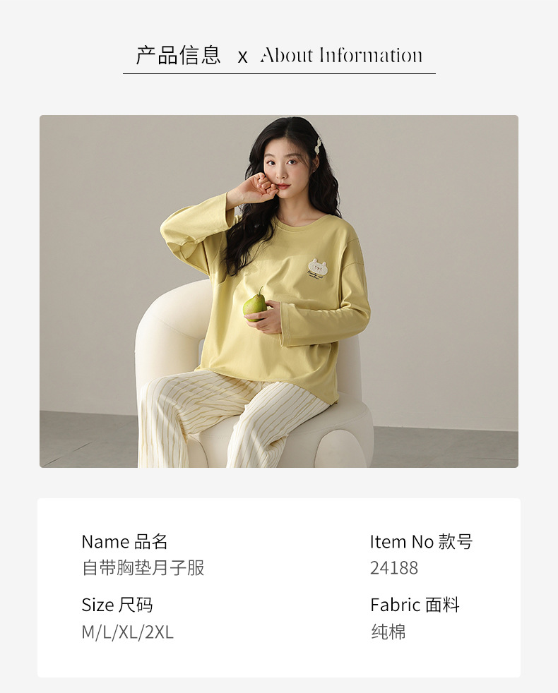 商品名称:(总)洛兰沙家居馆 春秋带胸垫纯棉月子服新款孕妇甜美可爱哺乳吸汗透气哺乳睡衣