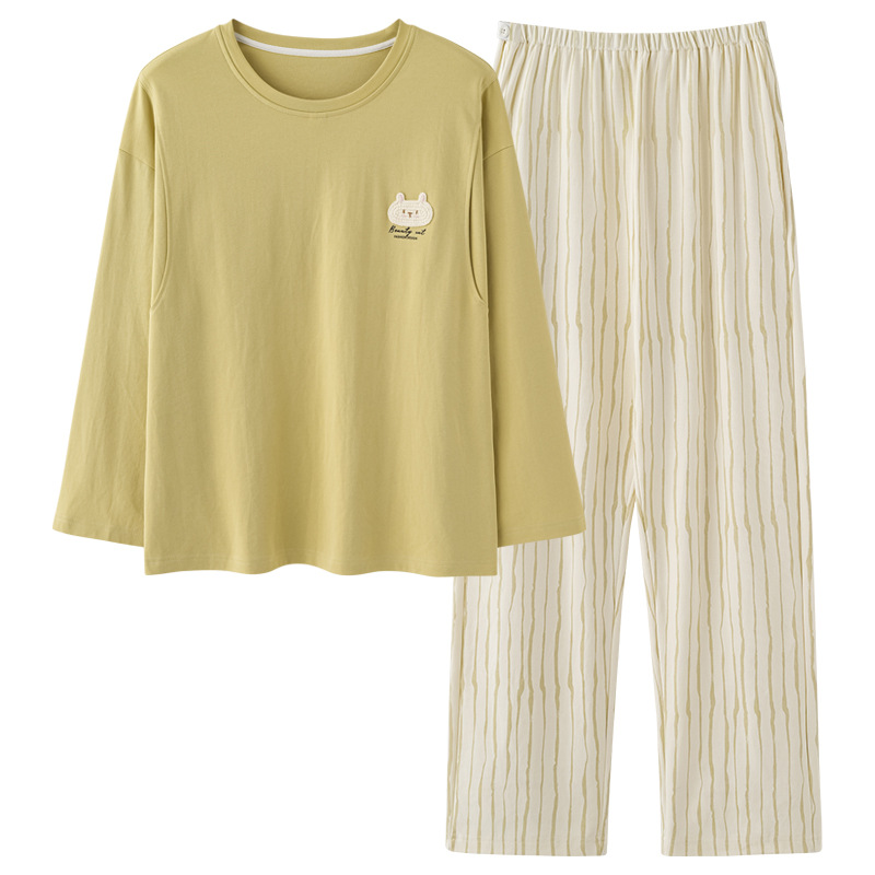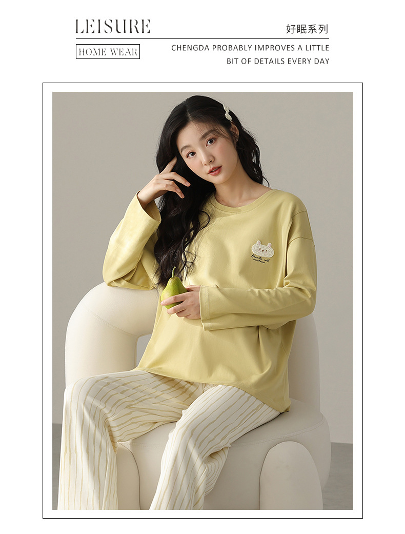 (总)洛兰沙家居馆 韩版甜美素色木耳边纯棉睡衣女春秋季长袖宽松少女感家居服套装可外穿,花色1,花色2