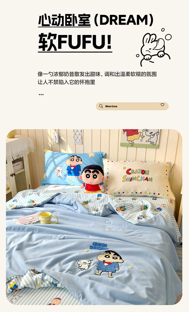 当前位置: 91家纺网 > 商品网购 > 床品套件 > 四件套 > 夏被四件套 > 一霖家纺 2026新款高克重云朵棉正版蜡笔小新夏凉被空调被夏被四件套 小红书热推爆款 夏被-小新小奎的爱情