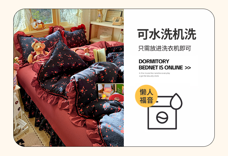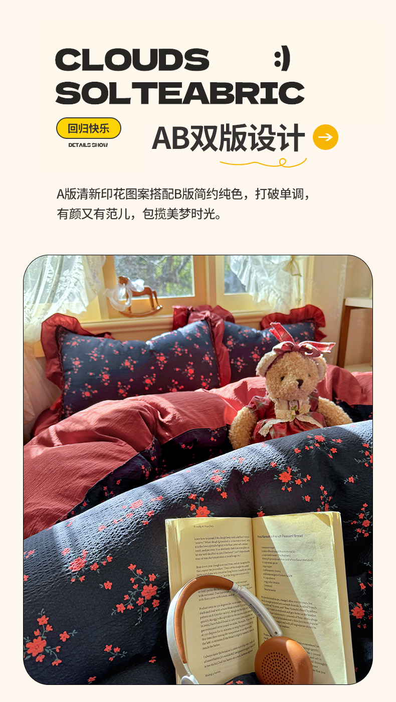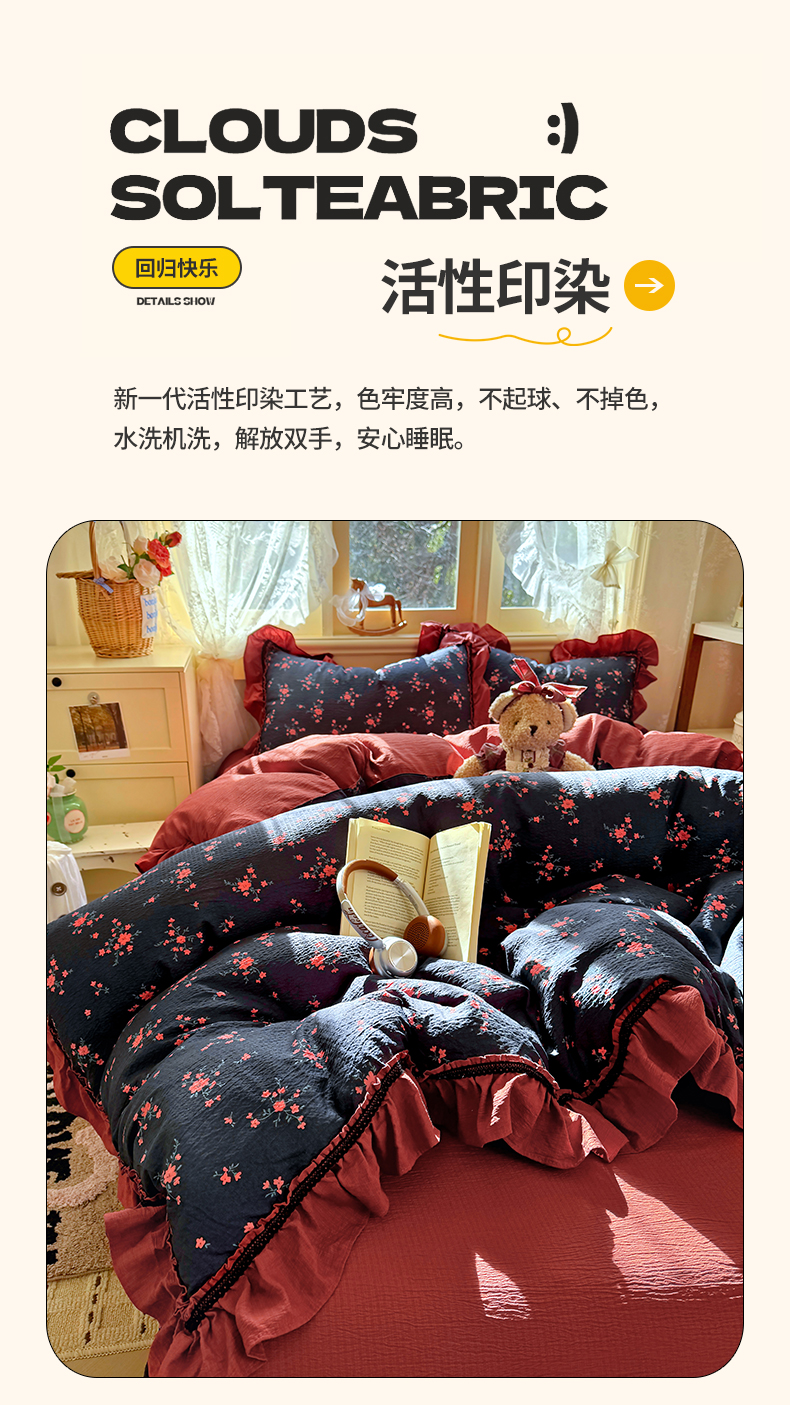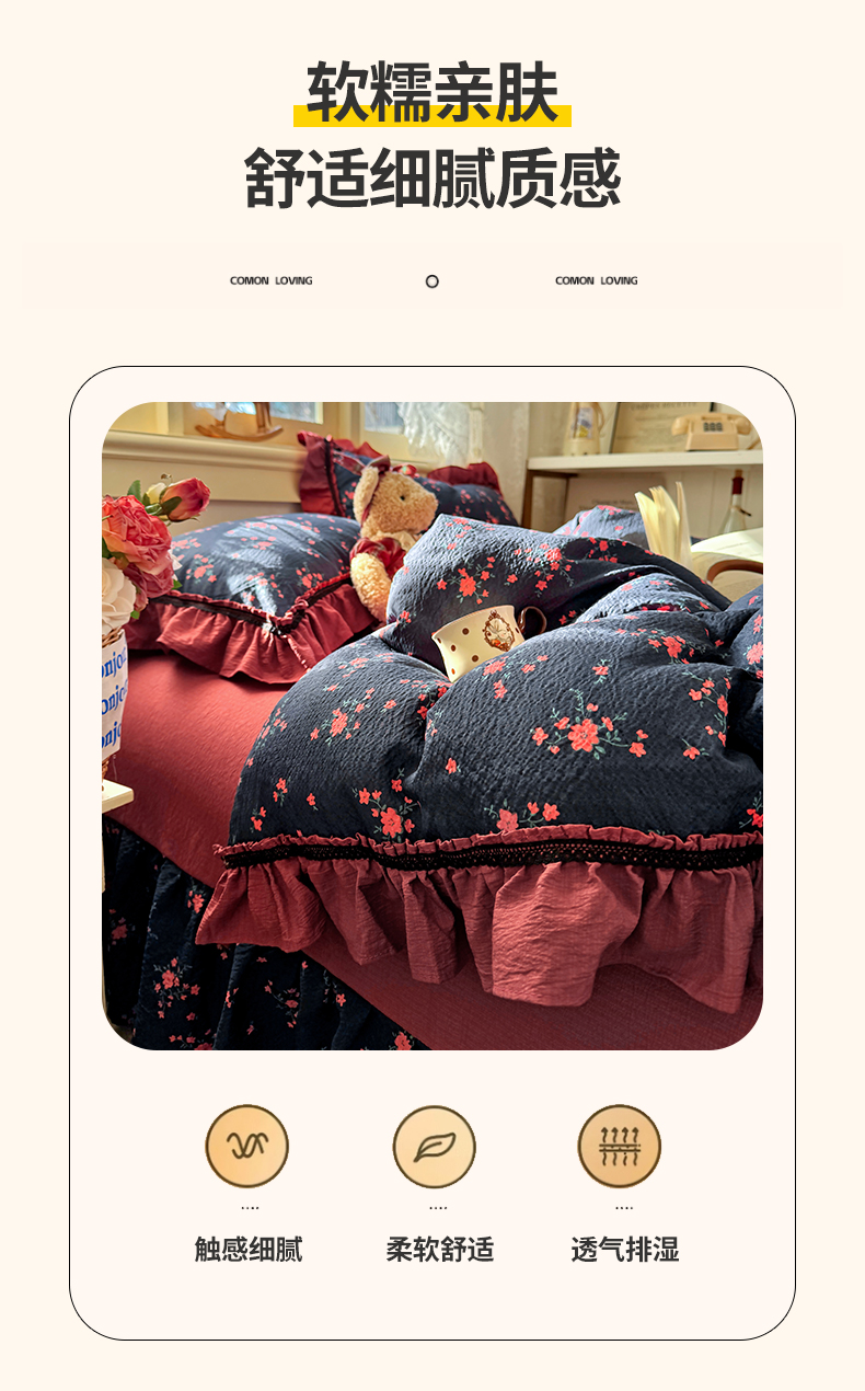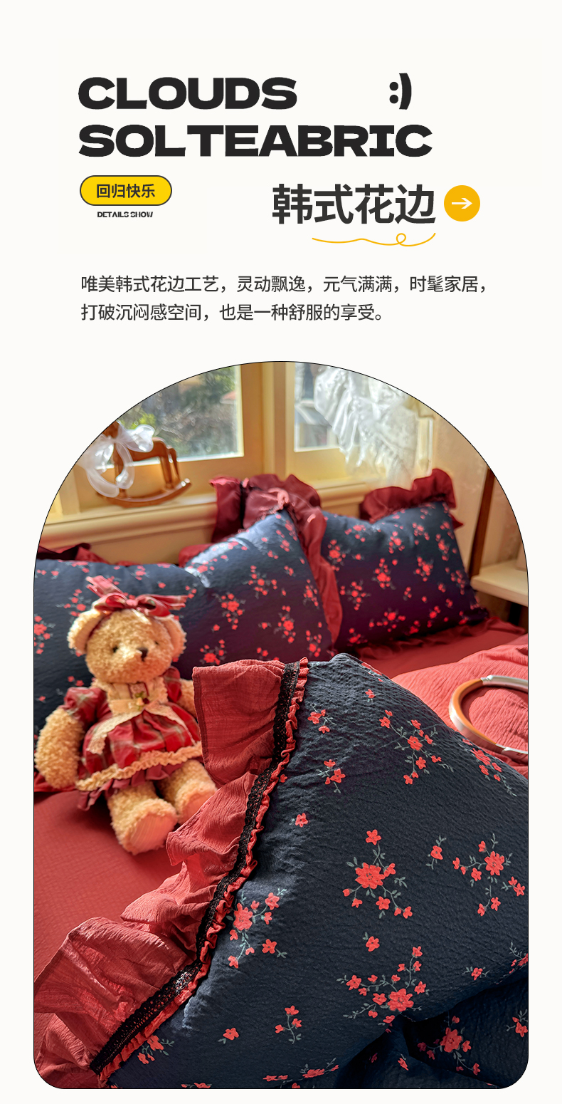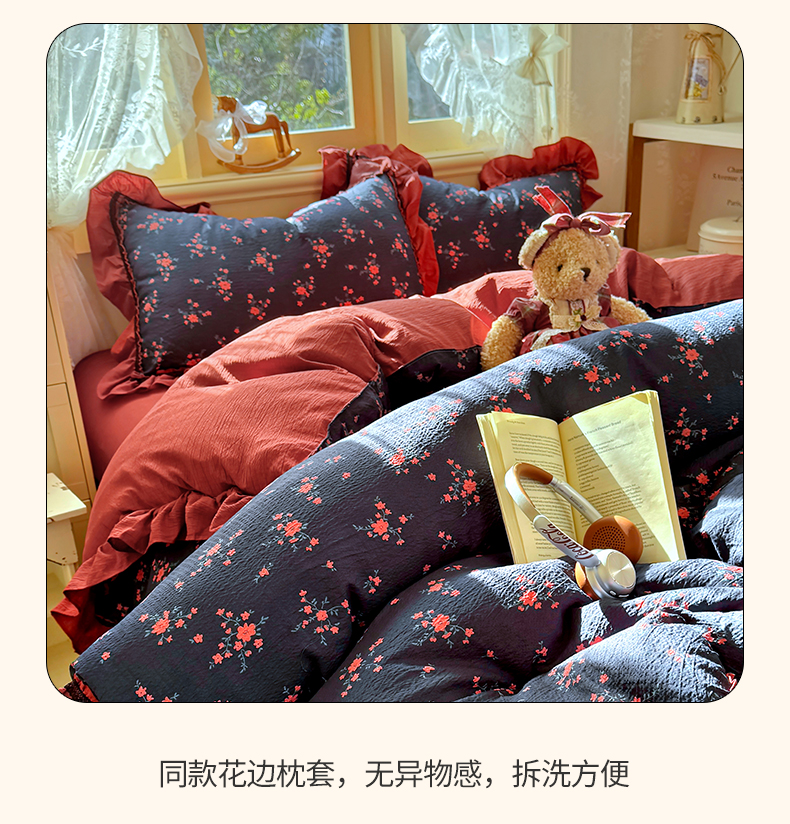 商品名称:芭比蔓家纺 2026春夏新款皱皱纱印花四件套 甜蜜蜜