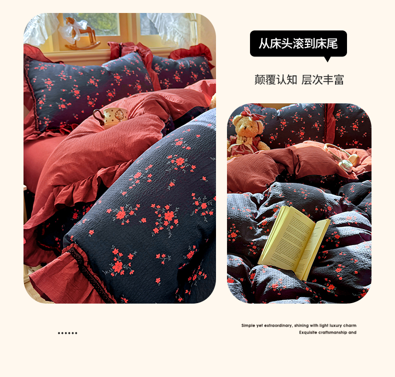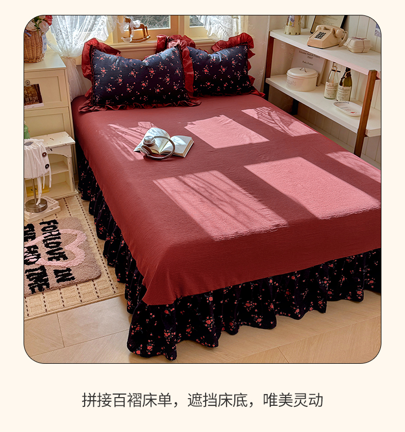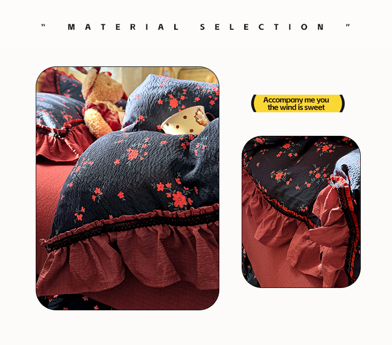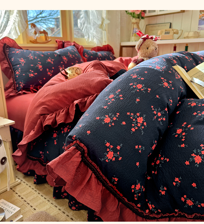 芭比蔓家纺 2026春夏新款皱皱纱印花四件套 甜蜜蜜