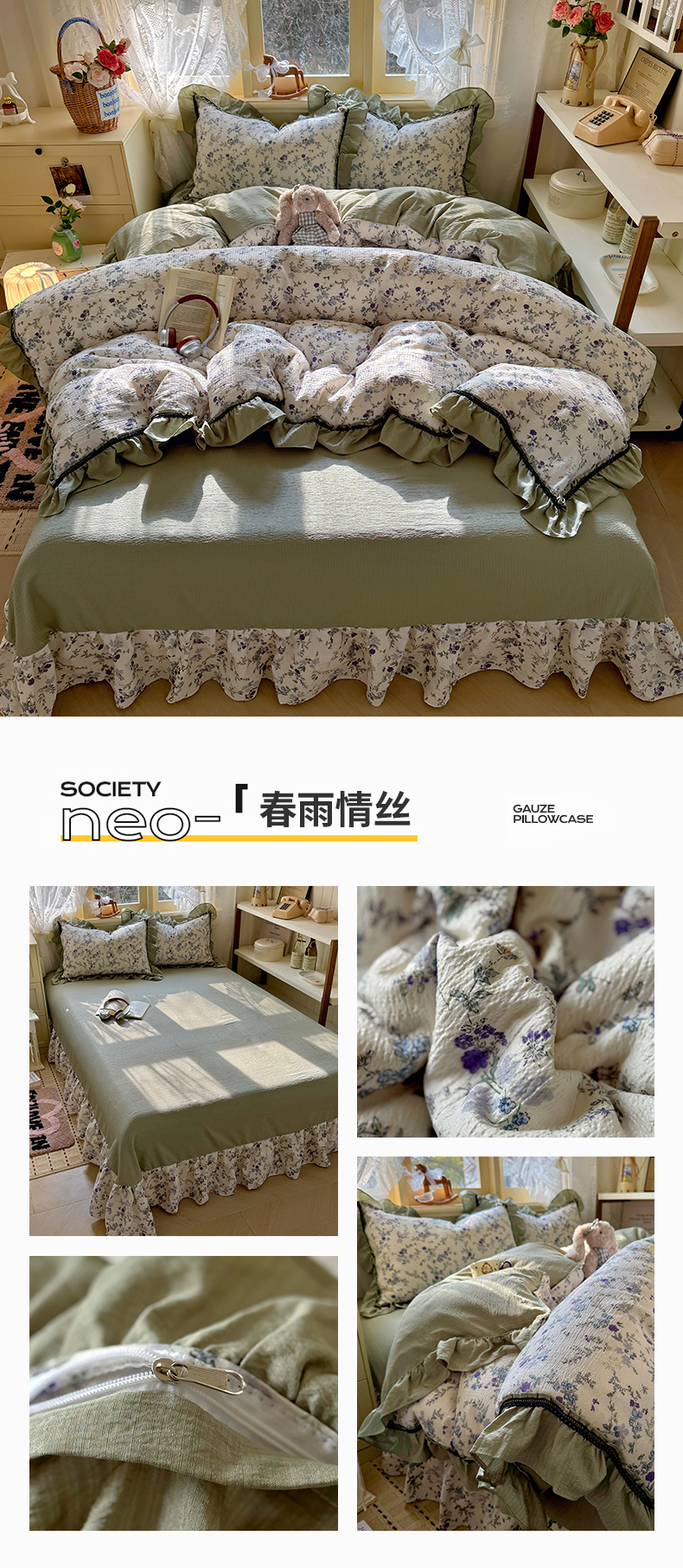 (总)芭比蔓家纺 2026春夏新款皱皱纱印花四件套,春雨情丝,花海迷情,花开满满,花月佳期,浪漫花语,恋夏,陌上花颜,柔情细语,甜蜜蜜,云梦