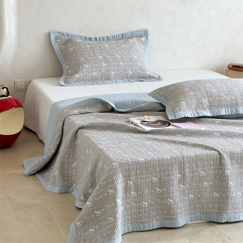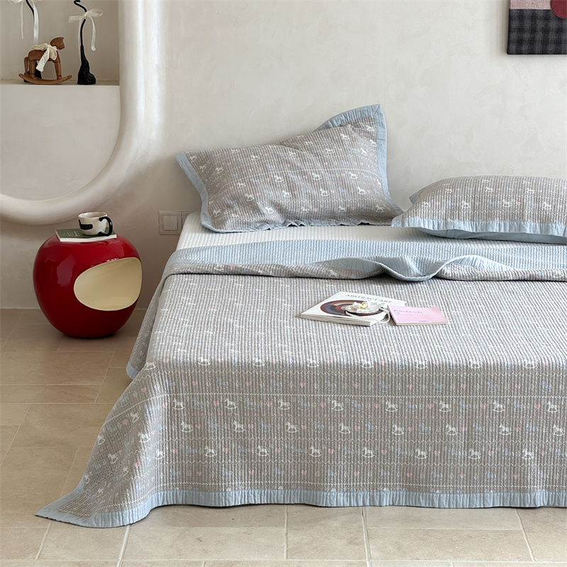 (总)床盖工厂店 2026新款全棉卡通纱布床盖三件套,斑点象 粉,斑点象 兰,嘟比熊,萌星 黄,趣梦鹅 黄,趣梦鹅 绿
