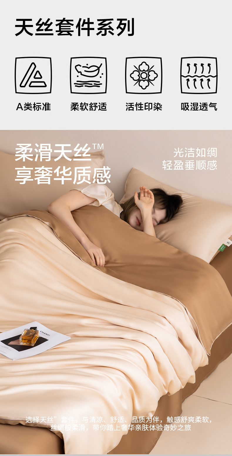当前位置: 91家纺网 > 商品网购 > 床品套件 > 四件套 > 其它四件套 > 眠博士 2026新款60S天丝莱赛尔纯色四件套 60S天丝套件-浅茶色+咖