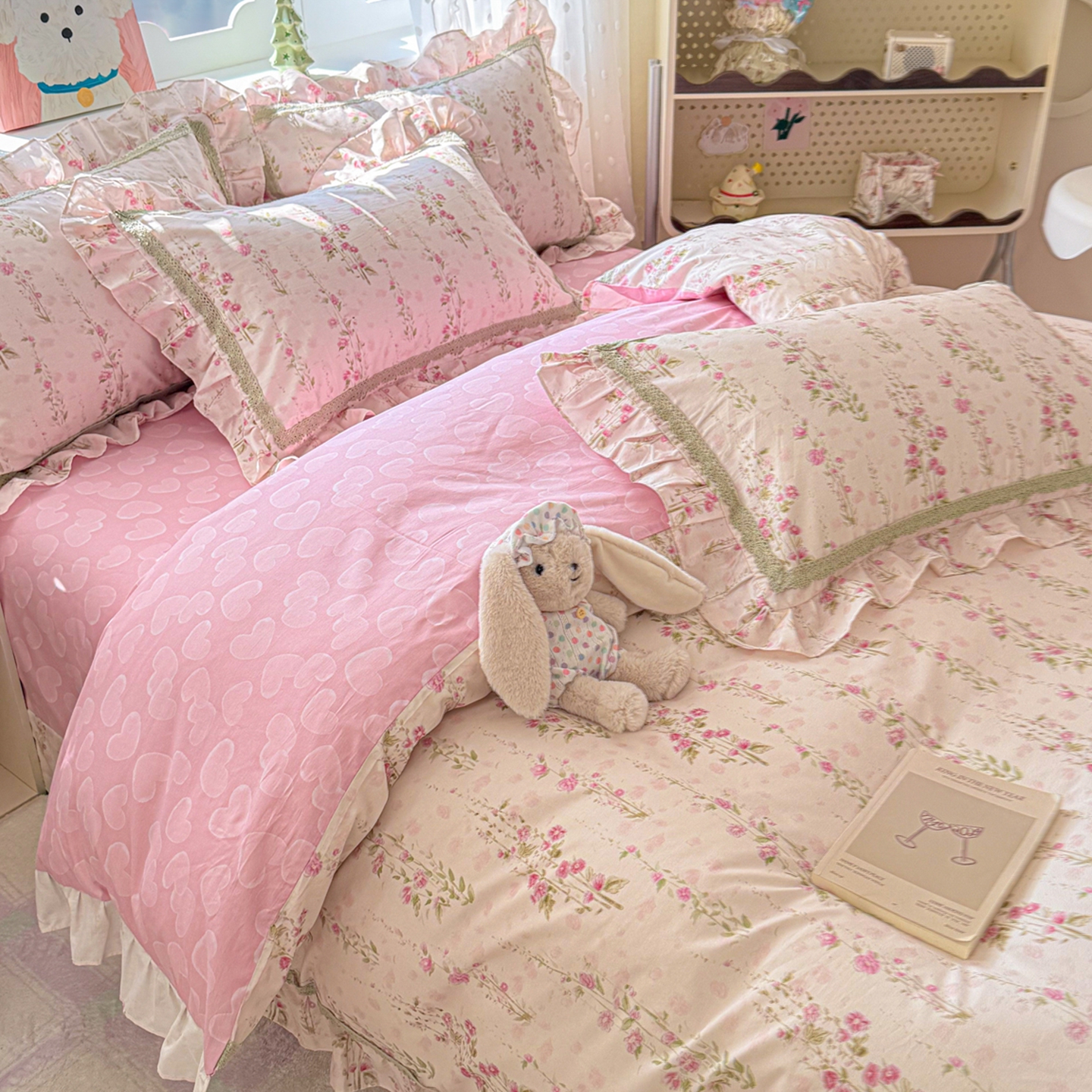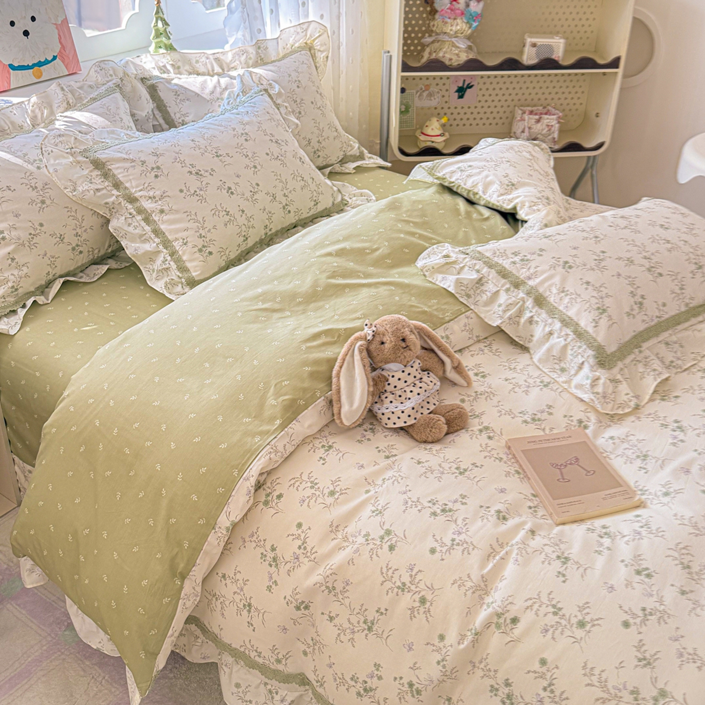 眠屿家纺 2026新款40支全棉纯棉小清新法式花边款四件套 幽韵飘香