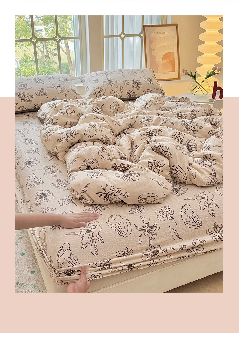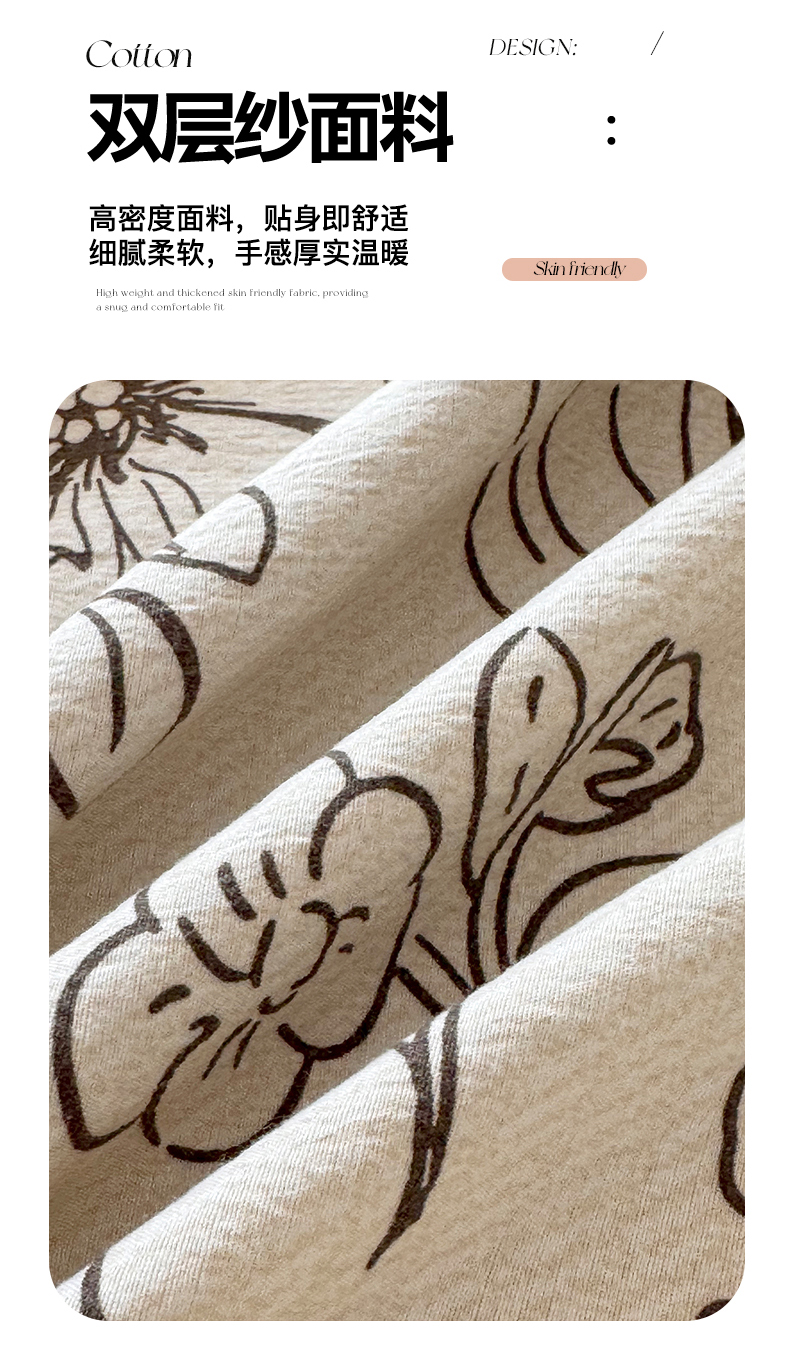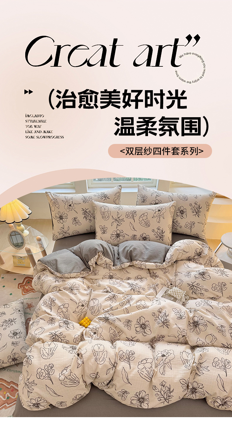 当前位置: 91家纺网 > 商品网购 > 床品套件 > 四件套 > 化纤普通四件套 > 悠米悠家 2026新款亲肤舒适木棉双层纱印花四件套 墨色花卉