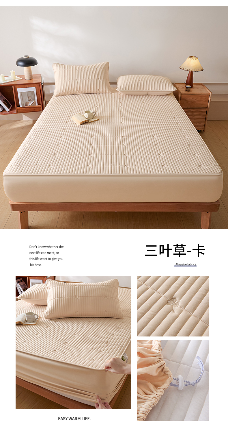 (总)居眠 2025新款防水夹棉床笠-清雅,清雅-粉色,清雅-灰色,清雅-卡其,清雅-绿色,清雅-米白,清雅-深蓝