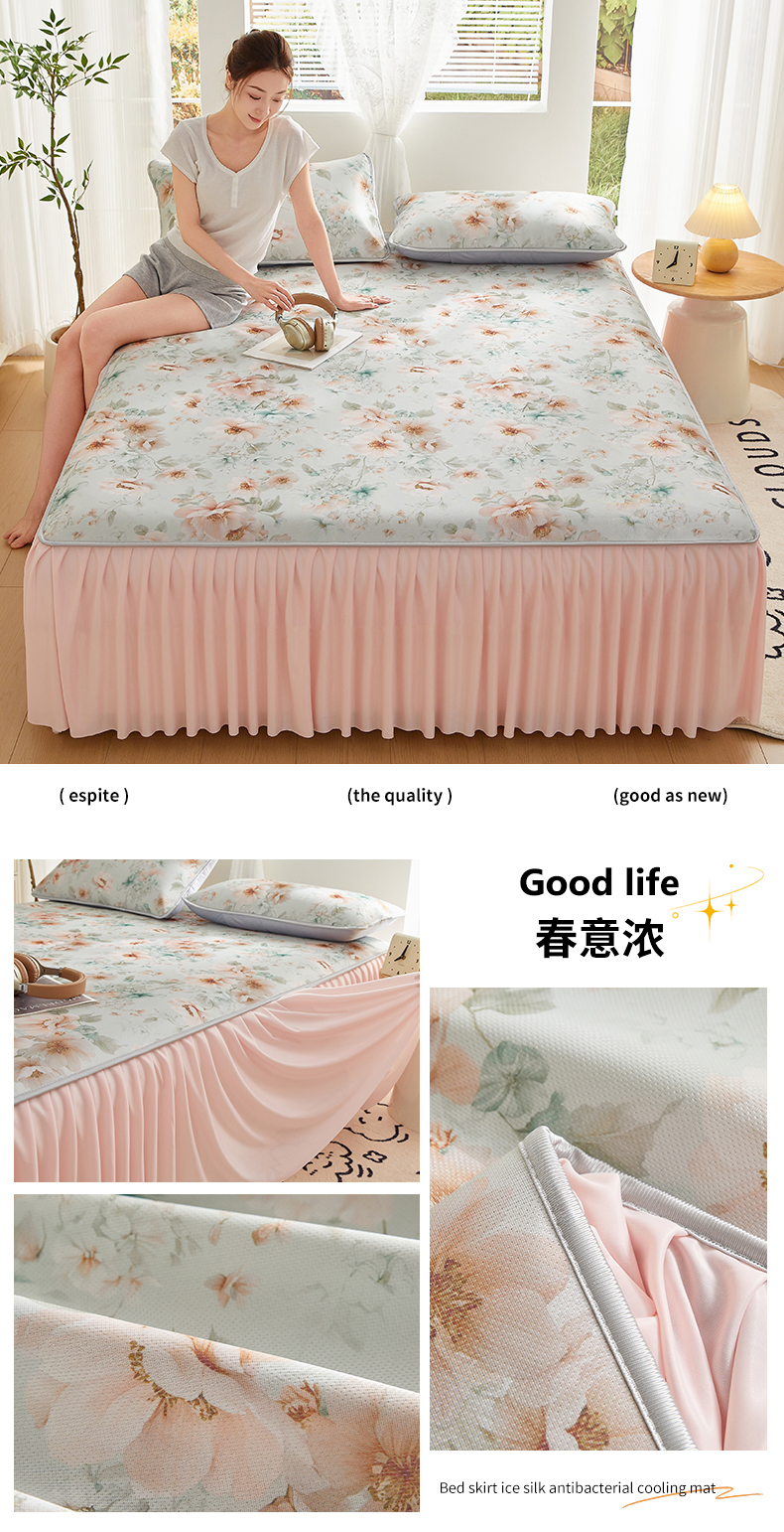 商品名称:优莱床垫 2026新款冰丝复合抗菌凉席床裙款 粉黛碎花凉席床裙