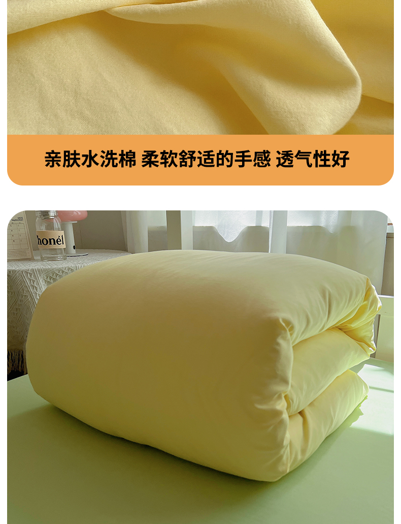 当前位置: 91家纺网 > 商品网购 > 床品套件 > 四件套 > 其它四件套 > 缦绣阁家纺 2026新款亲肤水洗棉纯色四件套床单被罩被套单件学生宿舍上下铺单人三件套 果绿浅黄