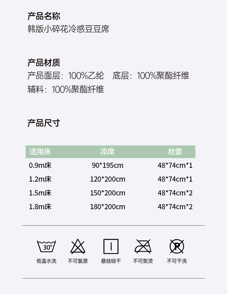 商品名称:(总)小牛席业 2026新款韩版小碎花冷感豆豆席凉席席子