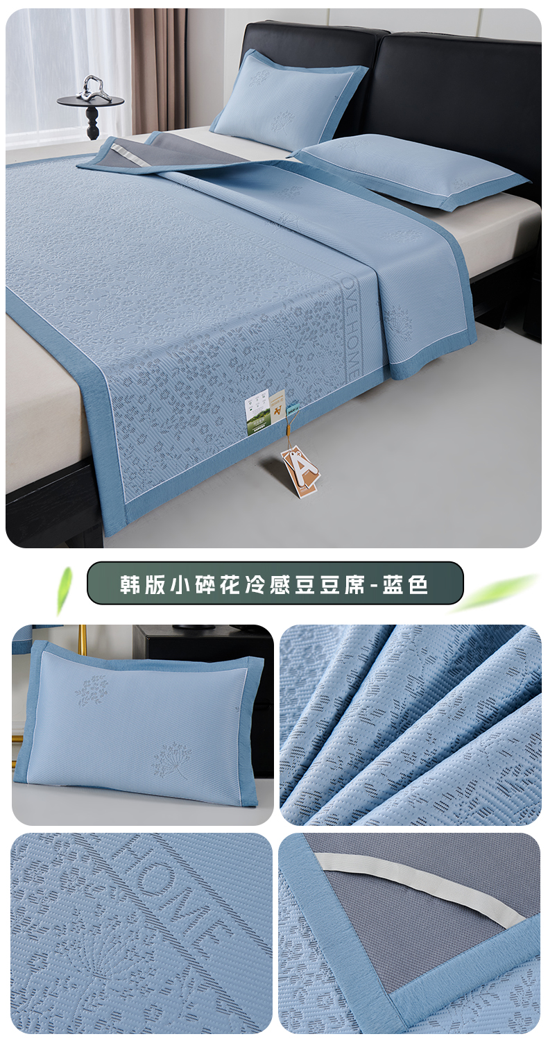 (总)小牛席业 2026新款韩版小碎花冷感豆豆席凉席席子(床笠款),粉色,灰色,蓝色,抹茶