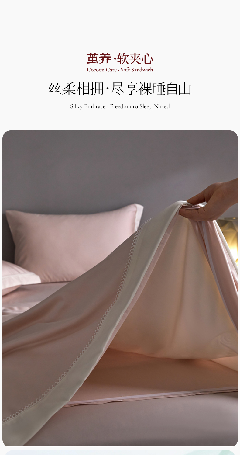(总)金奇达家纺 2026新款茧养软夹心蚕丝四件套-丝颜悦色(单夏被全网控价不低于228元 标准号全网控价(折后券后)不低于299元 单夏被会员-40元 四件套会员-30)