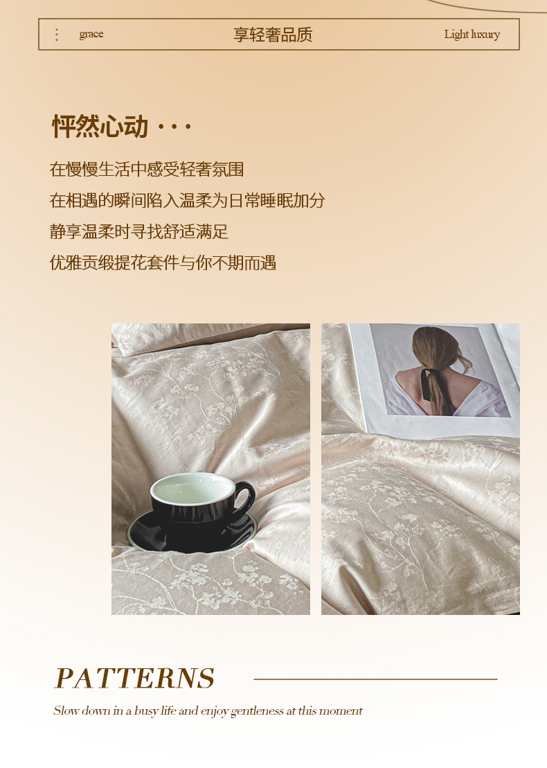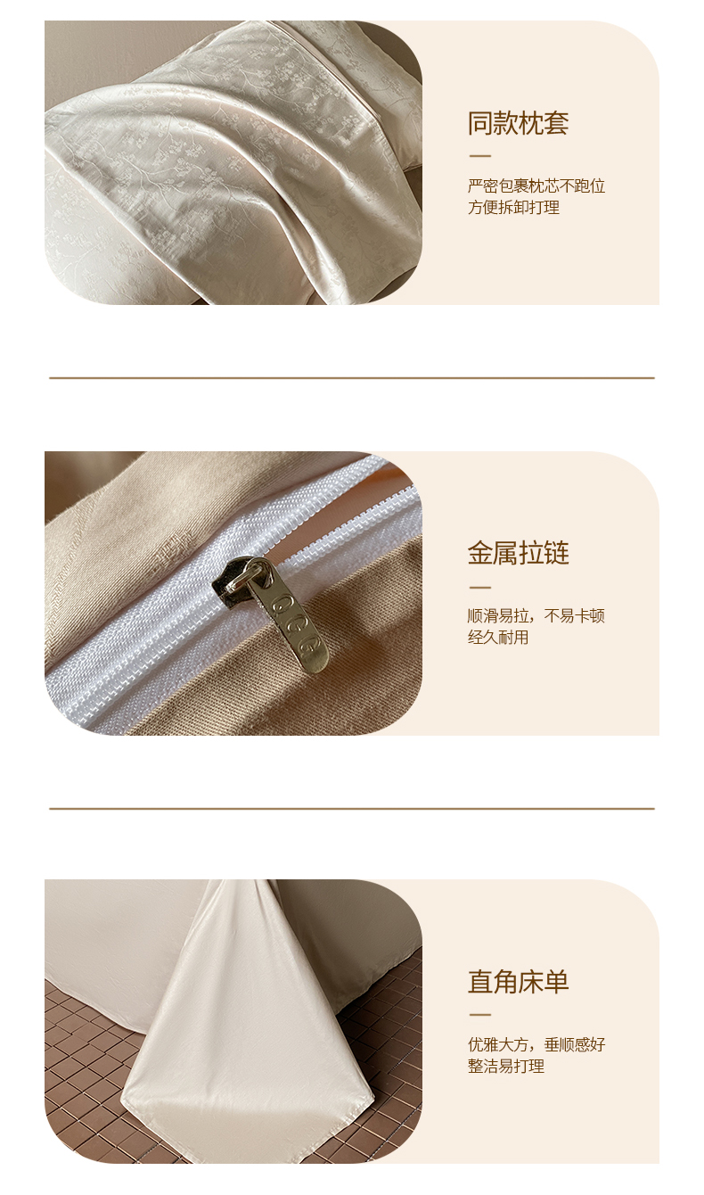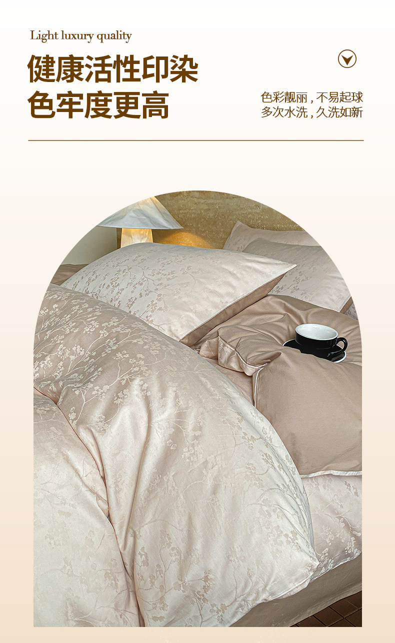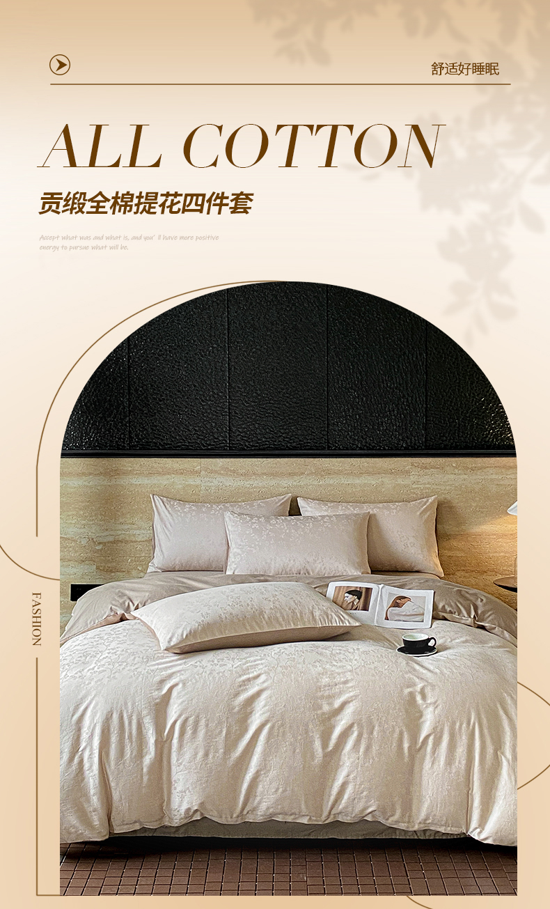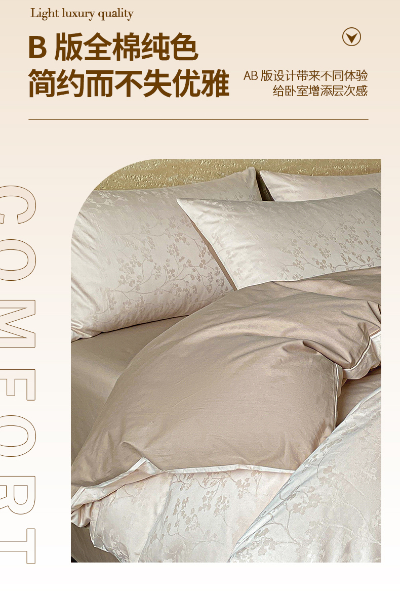 当前位置: 91家纺网 > 商品网购 > 床品套件 > 四件套 > 全棉普通四件套 > 琪格格纺织 2026新款纯棉全棉60s贡缎轻奢大提花四件套 纯棉贡缎 清影浅咖