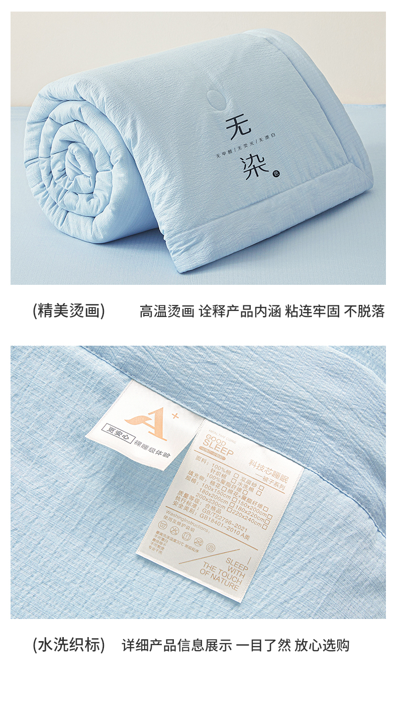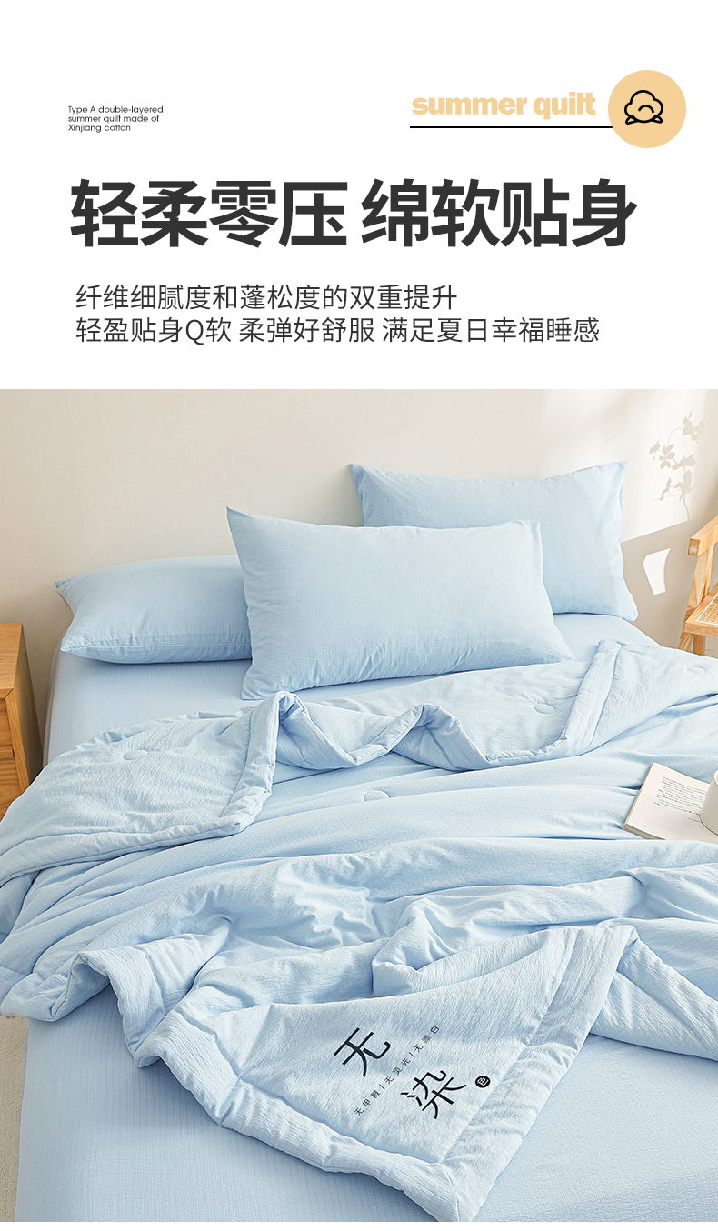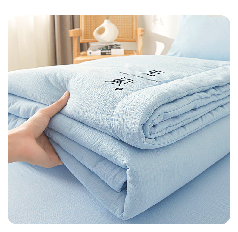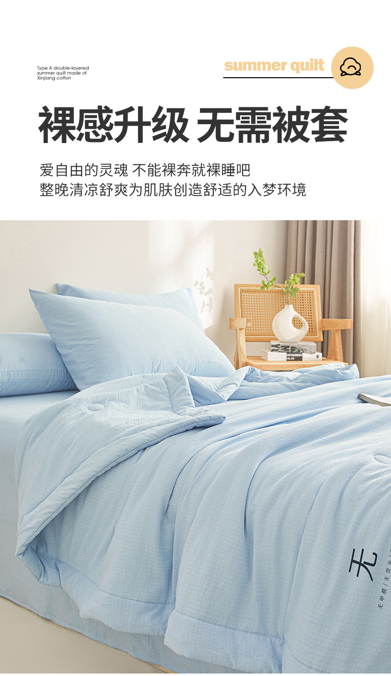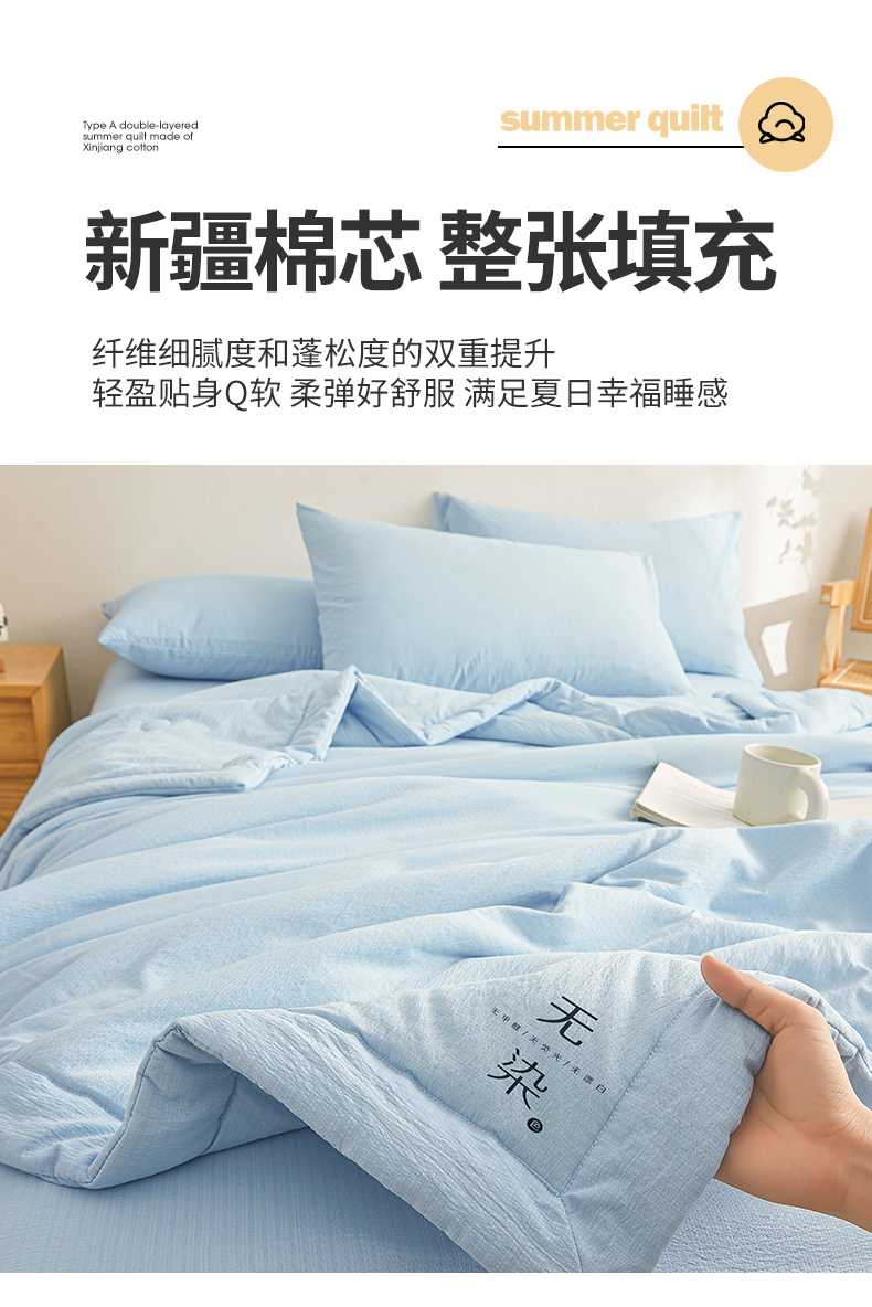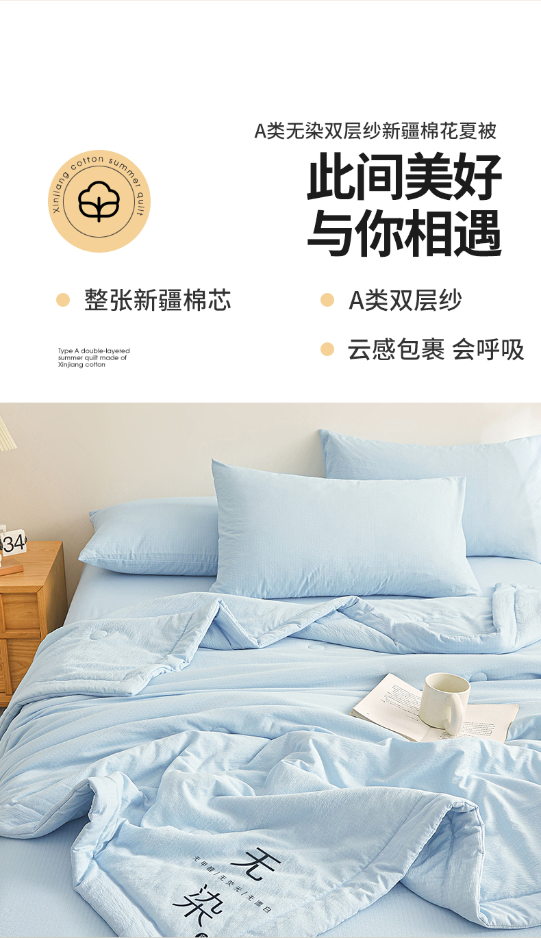 • 91家纺网 家纺一手货源 找家纺 晓时候 2026A类云感双层纱夏被四件套新疆棉花被无染夏凉被空调被 青春蓝