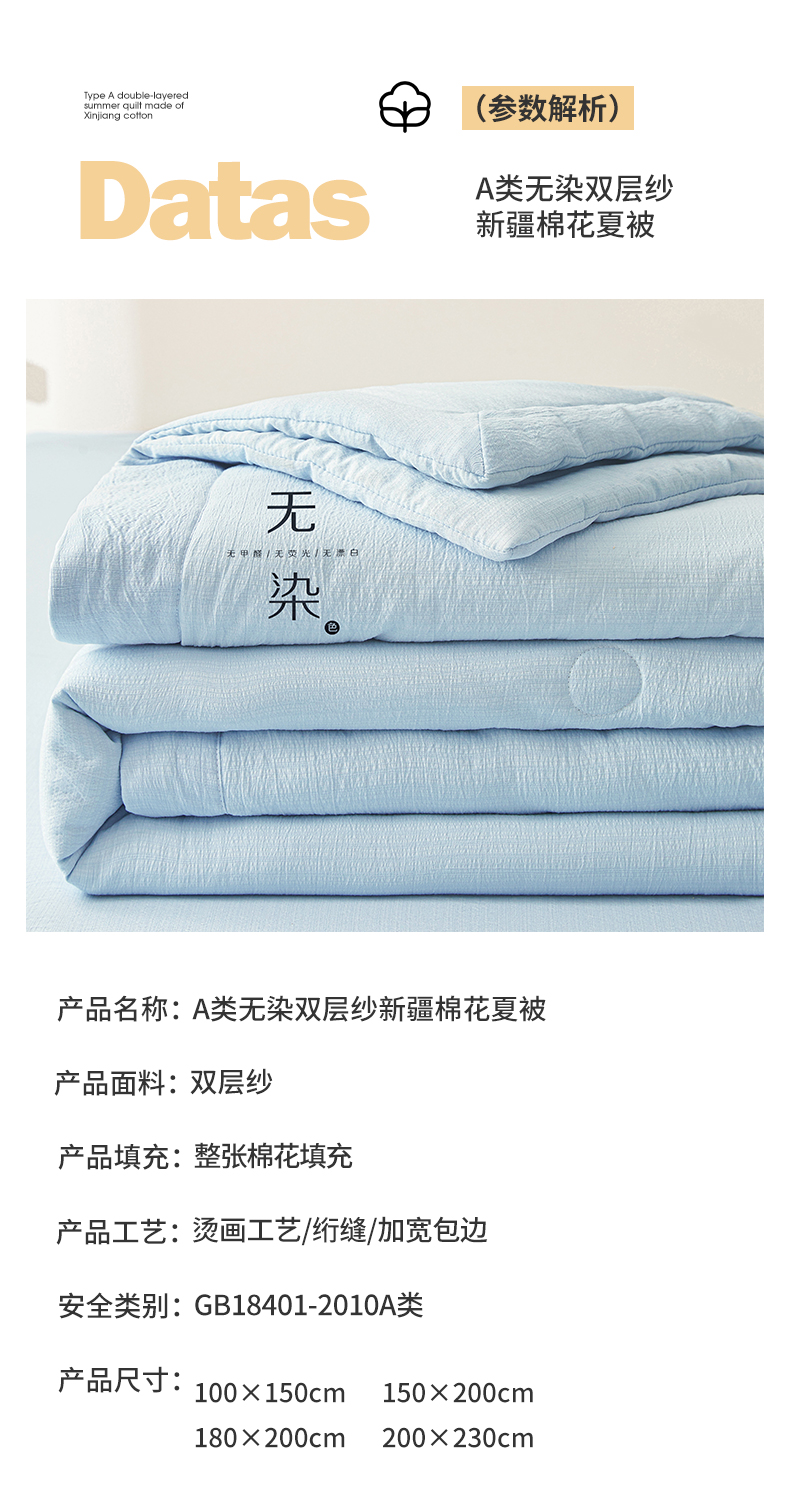 (总)晓时候 2026A类云感双层纱夏被四件套新疆棉花被无染夏凉被空调被,云朵白+青竹绿,冰川灰,青春蓝,青春蓝+柠檬黄,青竹绿,樱花粉,樱花粉+柠檬黄,云朵白,云朵白+冰川灰,云朵白+柠檬黄,云朵白+青春蓝,云朵白+樱花粉