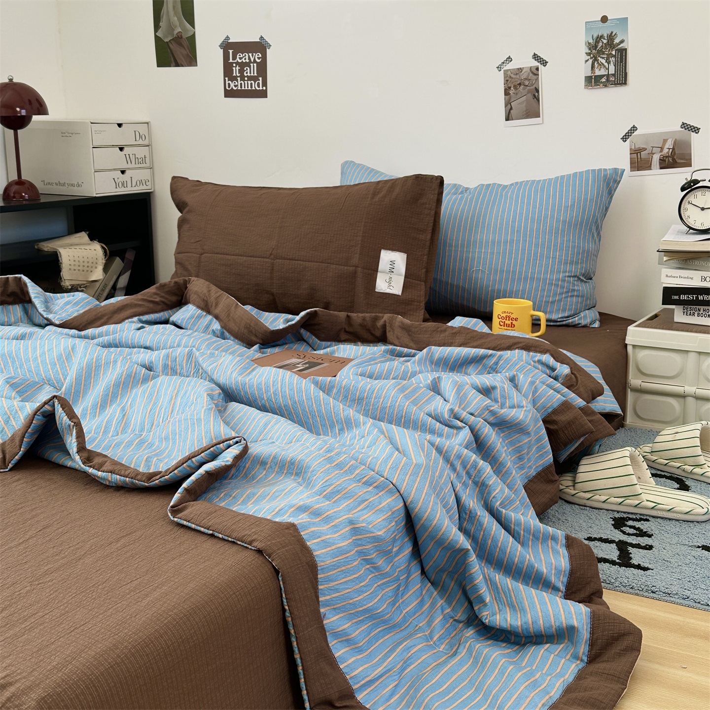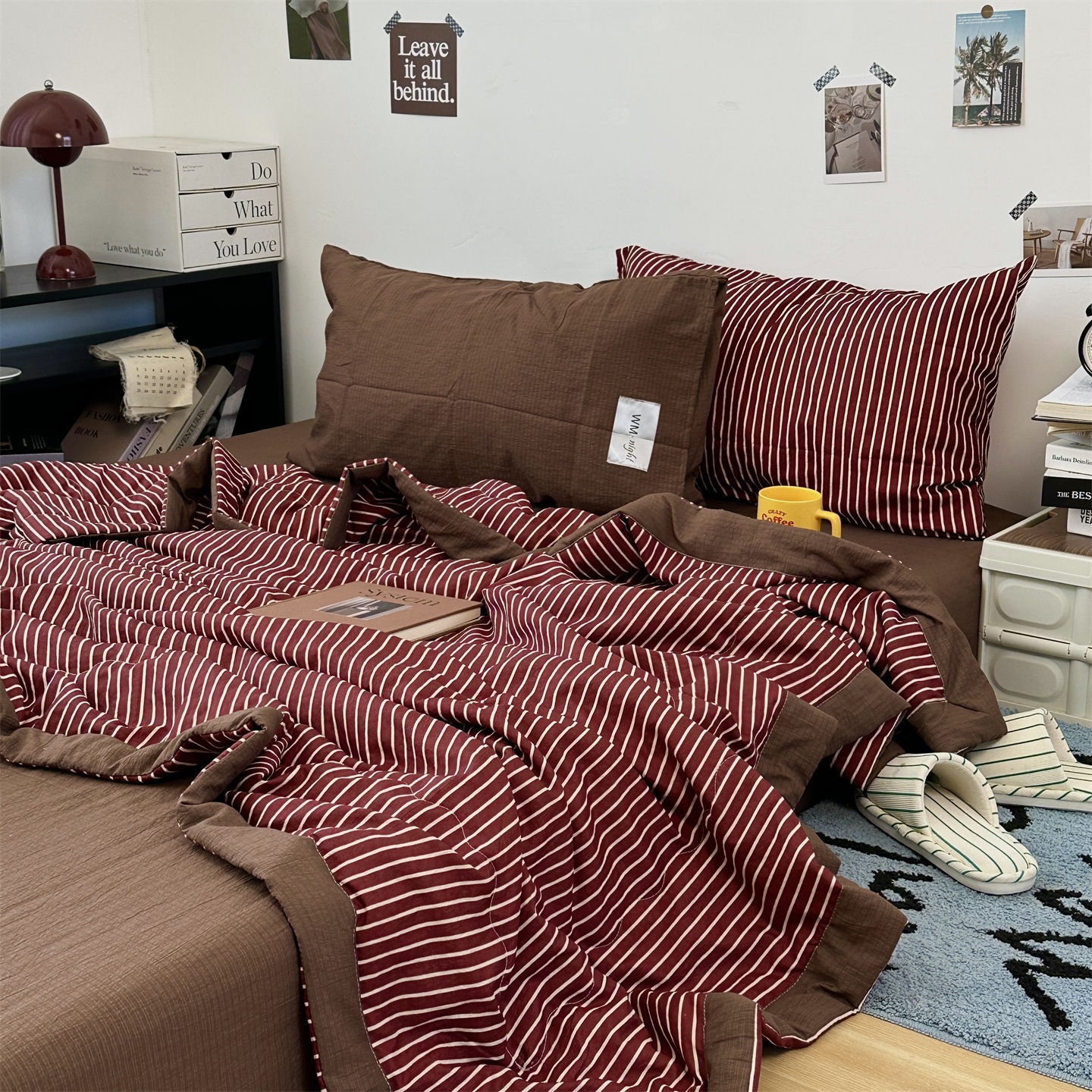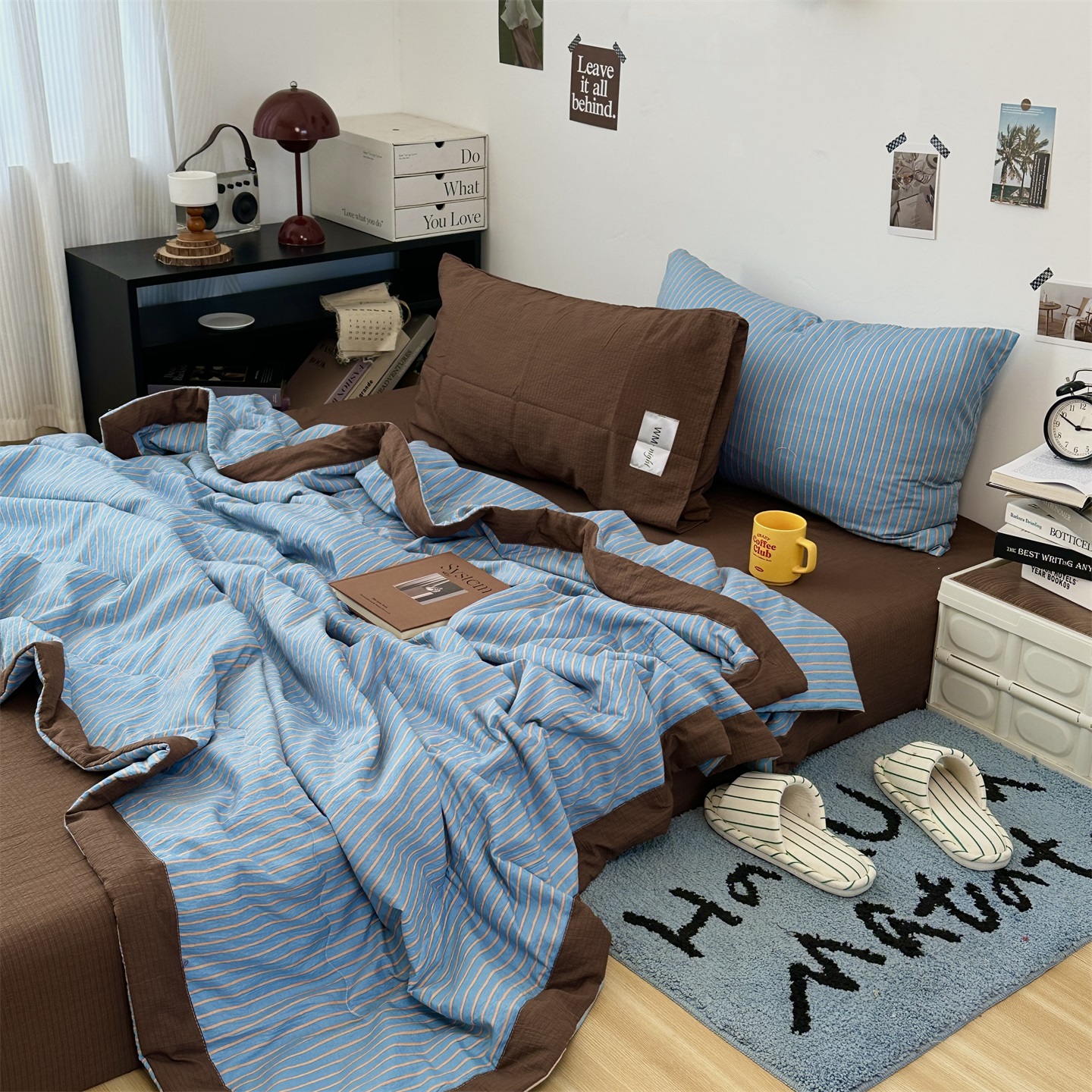 (总)拾一 2026新款条纹简约中古木棉水洗棉四件套,慵懒条-黑,慵懒条-红,慵懒条-灰,慵懒条-卡其,慵懒条-克莱因蓝,慵懒条-奶茶,慵懒条-棕