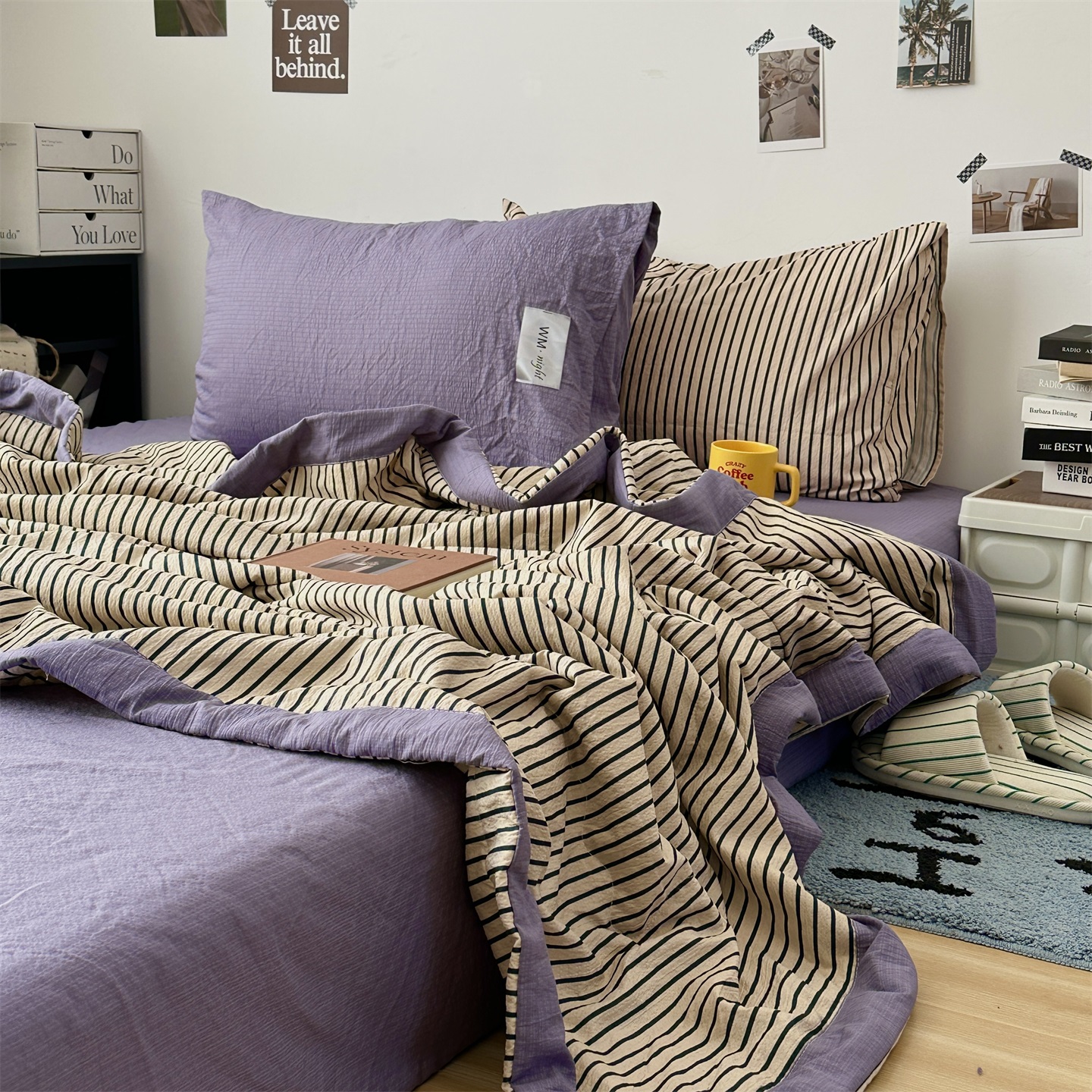 (总)拾一 2026新款简约日式条纹软糯水洗棉木棉夏凉被四件套单件空调被