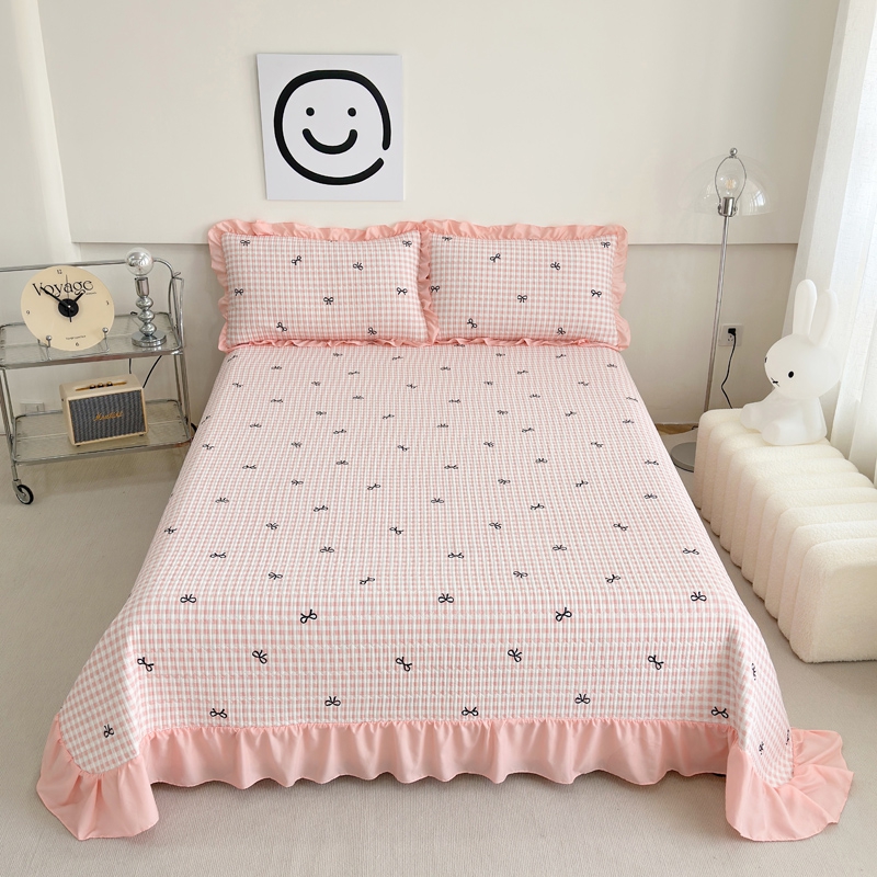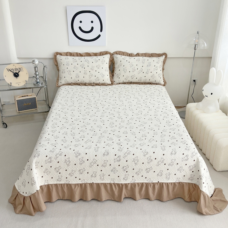 赛琳 2026新款水洗棉花边床盖单件床盖四季通用夹棉床盖 床盖单件 灰蒙小狗
