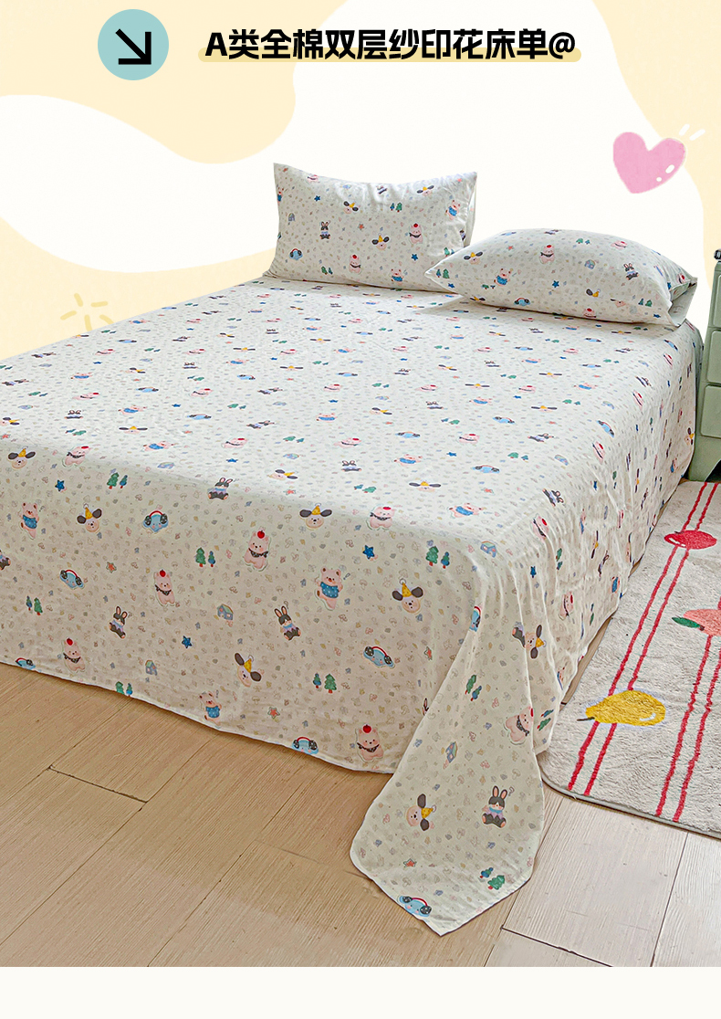 (总)名兮家居 2026新款全棉纯棉A类双层纱单床单 床单单件,双层纱-彩色波点,双层纱-彩条樱桃,双层纱-狗狗幻想,双层纱-花田鸭,双层纱-兰花小兔,双层纱-蘑菇屋,双层纱-木马集,双层纱-奶黄星仔,双层纱-晴天兔,双层纱-趣味王国,双层纱-碎星蝶舞,双层纱-童梦缘,双层纱-小狗日记,双层纱-星星凯特,双层纱-猪猪乐园,双层纱-竹林派对