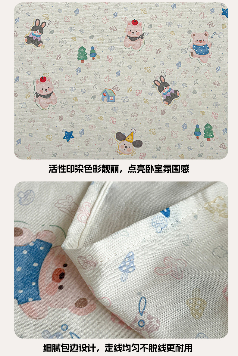 (总)名兮家居 2026春夏新款全棉纯棉A类双层纱四件套,双层纱-彩色波点,双层纱-彩条樱桃,双层纱-花田鸭,双层纱-兰花小兔,双层纱-蘑菇屋,双层纱-木马集,双层纱-奶黄星仔,双层纱-晴天兔,双层纱-趣味王国,双层纱-碎星蝶舞,双层纱-童梦缘,双层纱-小狗日记,双层纱-星星凯特,双层纱-猪猪乐园,双层纱-竹林派对